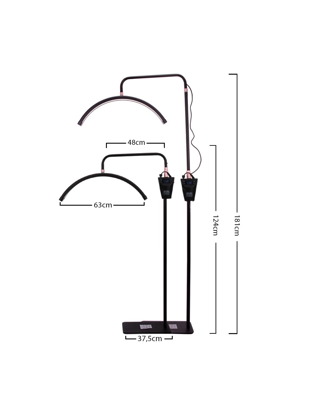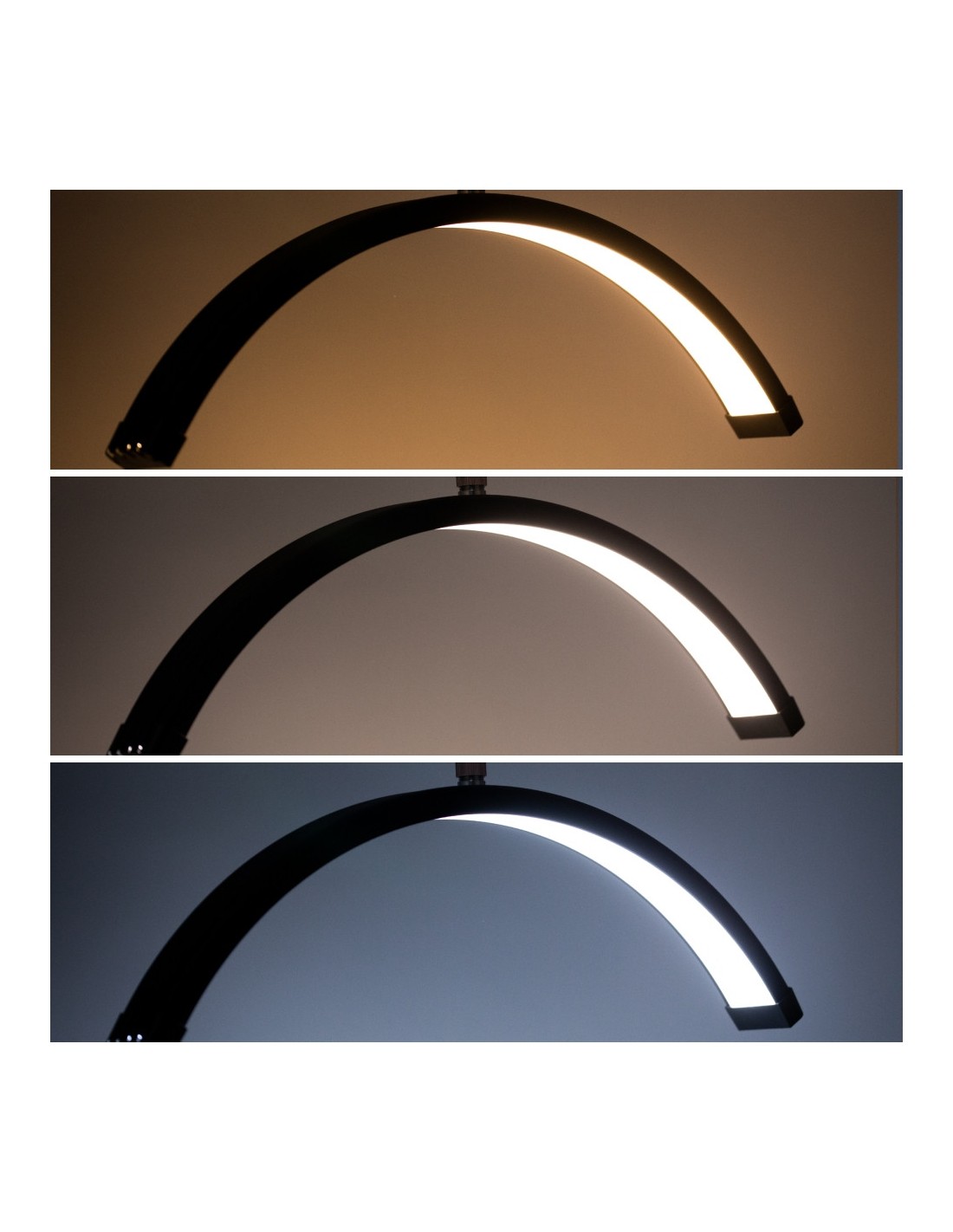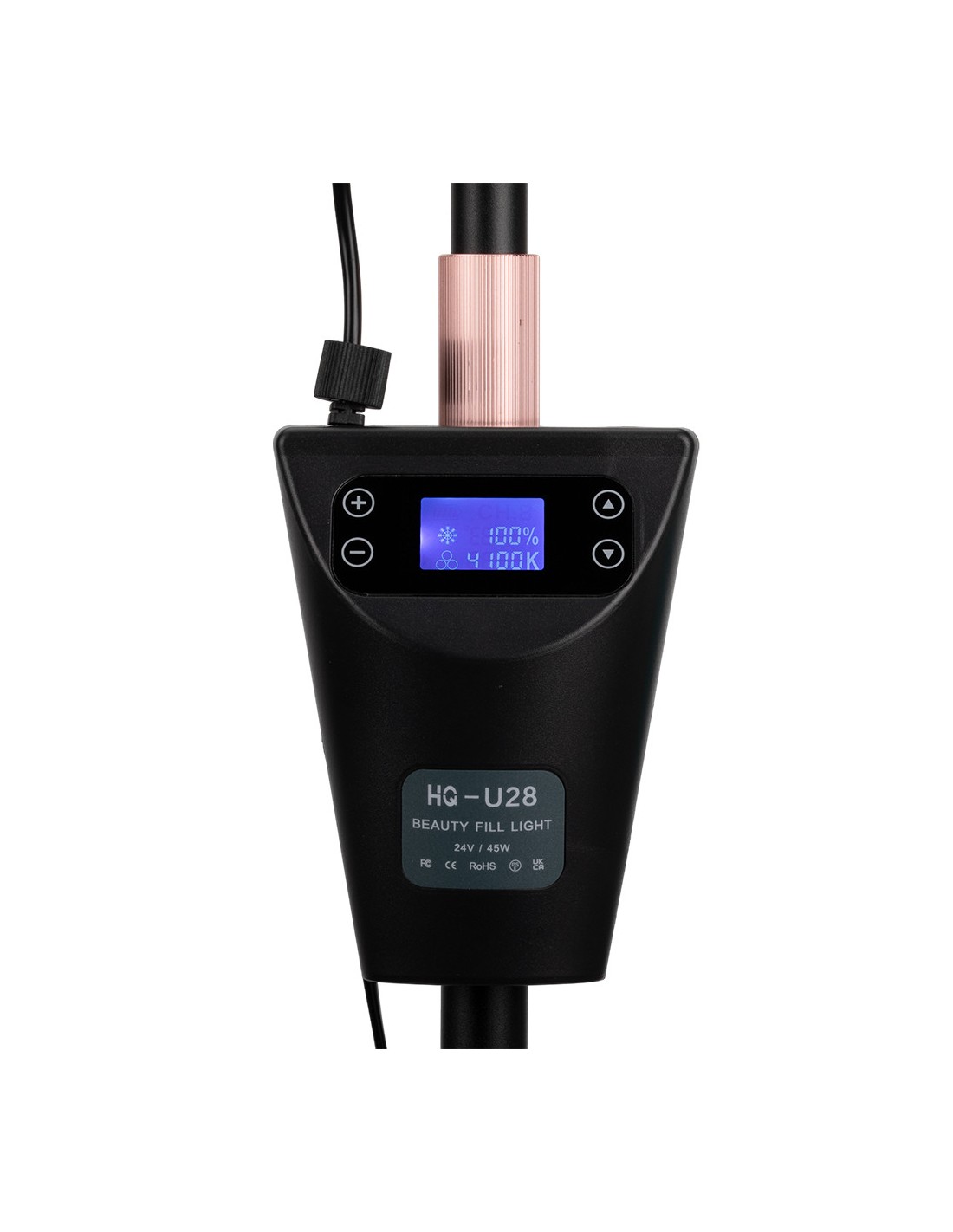 Lampen kan tilpasses mange posisjoner takket være den justerbare høyden på stativet (124-181 cm), som garanterer maksimal arbeidskomfort. Det bevegelige lampehodet gir mulighet for 360-graders rotasjon, slik at du raskt og enkelt kan justere belysningsposisjonen. Lampen kommer også med en telefonholder som du kan feste over lampehodet. Lampen er i tillegg utstyrt med en praktisk og tydelig skjerm for å justere kraften og fargen på lyset. Skjermen er montert på stativ og høyden kan justeres. I tillegg har lampen en USB-inngang som du kan koble telefonen til.