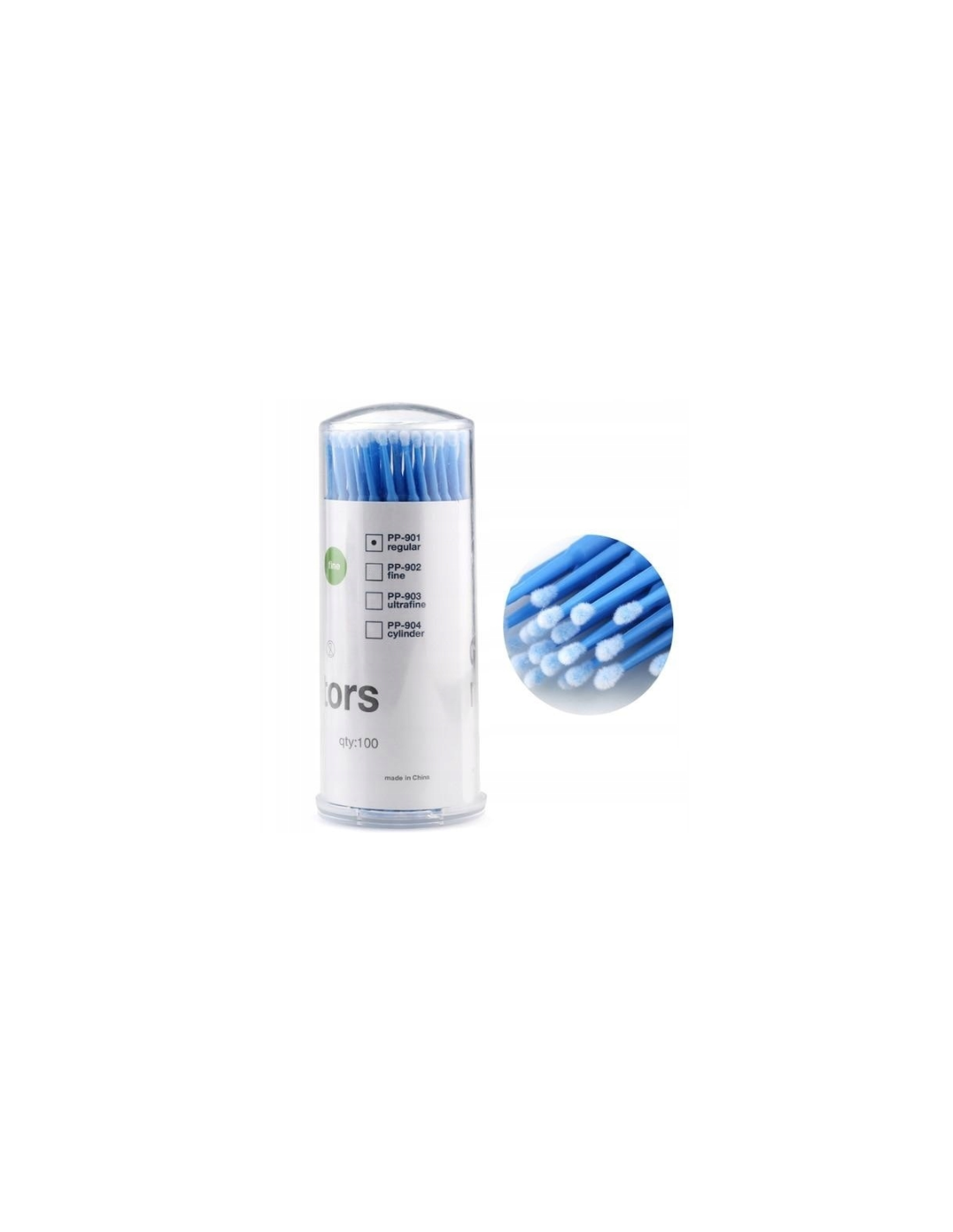 Applikatorer renser øyevippene veldig godt under vippeforlengelsesbehandling. De fjerner lett overflødig lim. Sylindrisk emballasje. Pakken inneholder 100 applikatorer.