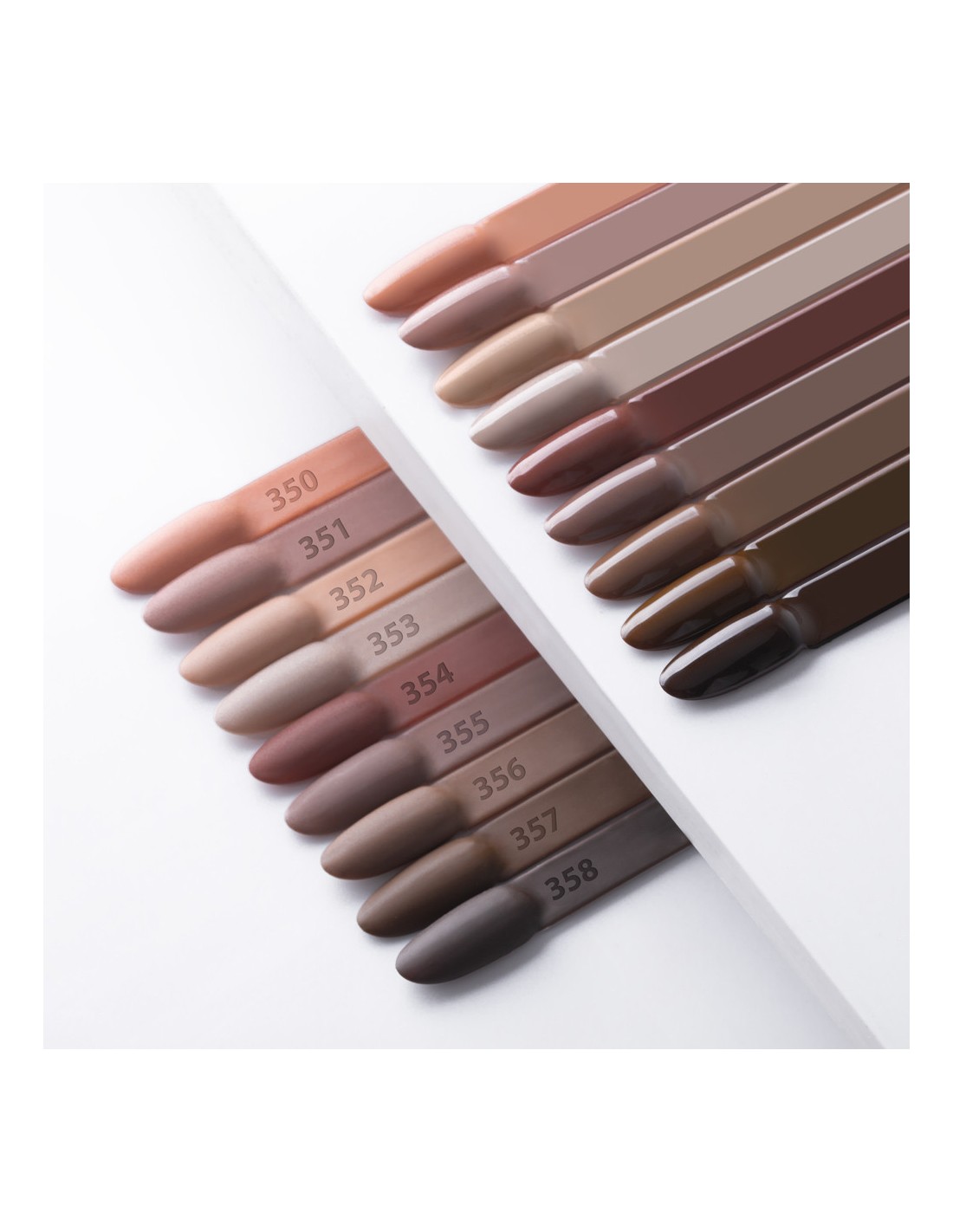 Molly Nails353. Peanut Butter - En gråaktig nyanse av lysebrun i et varmt klima. Denne nyansen av sjokoladefarge er alltid verdt å ha med deg.