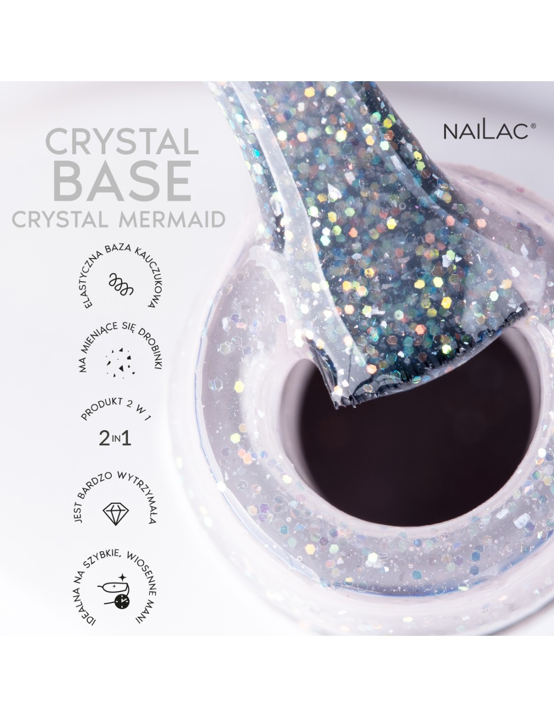 Perfekt for kvinner som elsker å skinner i en elegant og delikat versjon. Bli kjent med krystallbaser, skinne i en fiktiv stil og lag din magiske vårhistorie på neglene dine med subtilt pastellgummibaser med glitterpartikler.