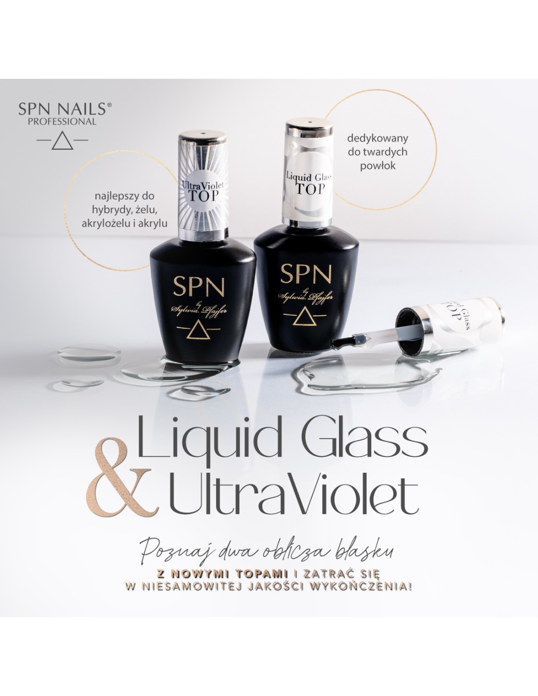 Liquid Glass Top er en "no-rinse" topp designet for påføring over gele, akryl, polygele og andre harde materialer. Det garanterer en utrolig glans som flytende glass!