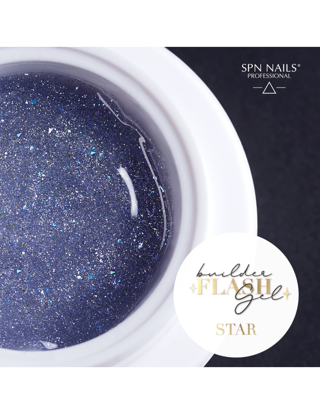 Builder Flash Gel Star lar deg lage ekstremt holdbare og imponerende stiler på kundenes negler. Det er en byggegele med glitrende partikler med en flash-effekt som vil gjøre drømmene dine til virkelighet