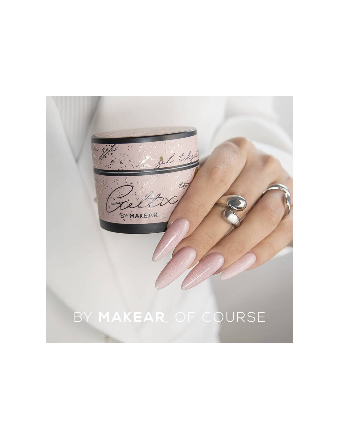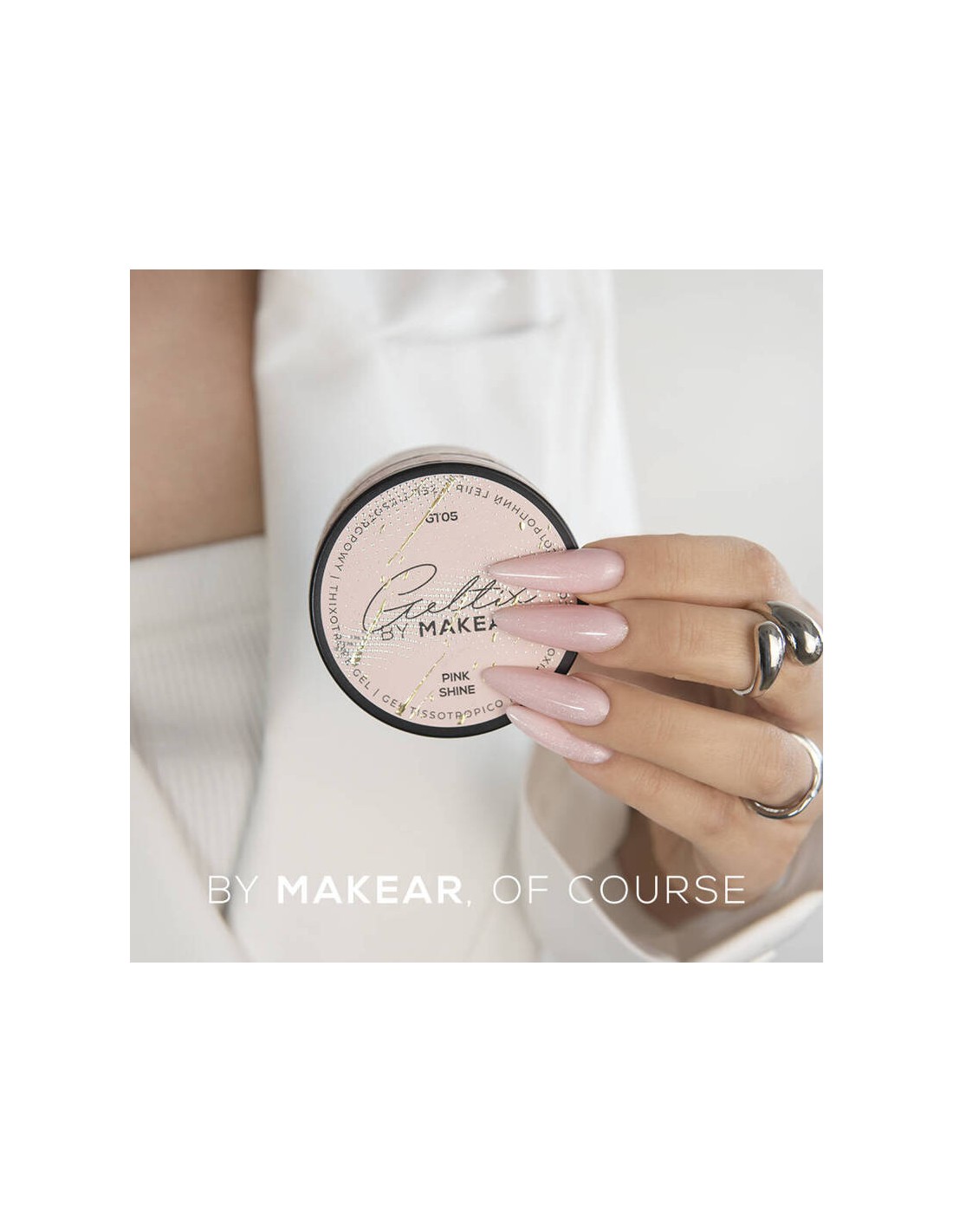 Geltix Shine er en byggegel med delikate partikler som lar deg lage myke neglestiliseringer uten bruk av hybridlakk. Gelen har et "flytende minne", som gjør at produktet perfekt samarbeider med børsten og sprer seg gjennom berøringen vår - bare der vi ønsker det. Dette betyr at Geltix Shine ikke flyter på neglebåndene, og når den påføres riktig, skaper den en perfekt lys linje på neglen uten at du forstyrrer.