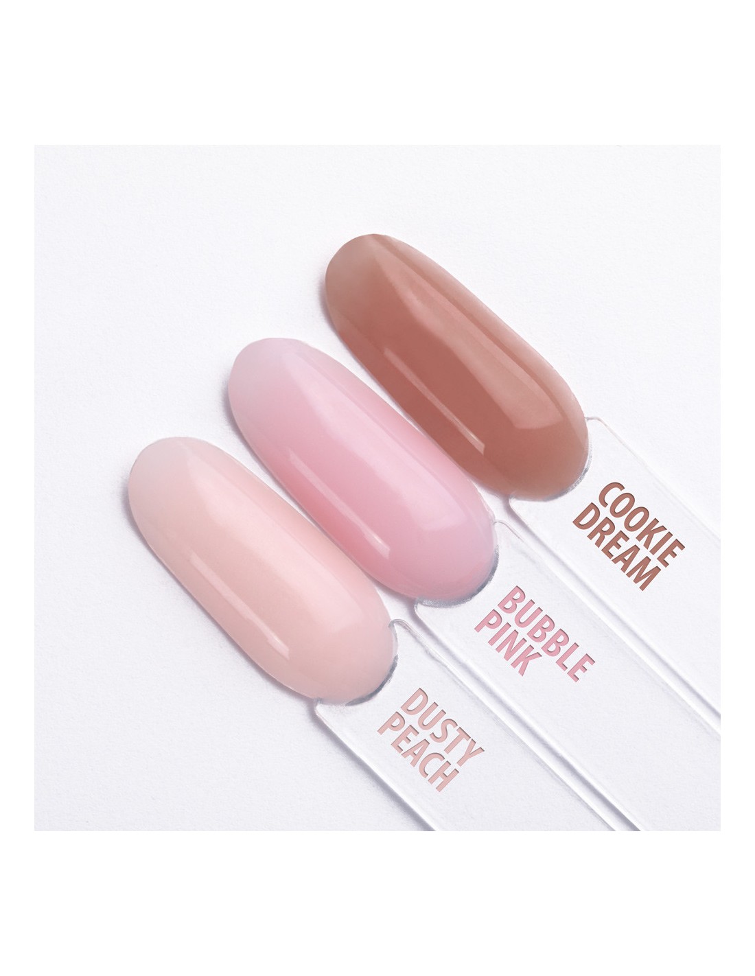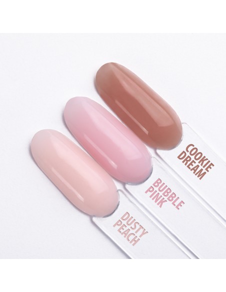 tilgjengelig i 3 fargevarianter: Dusty Peach, Bubble Pink og Cookie Dream.