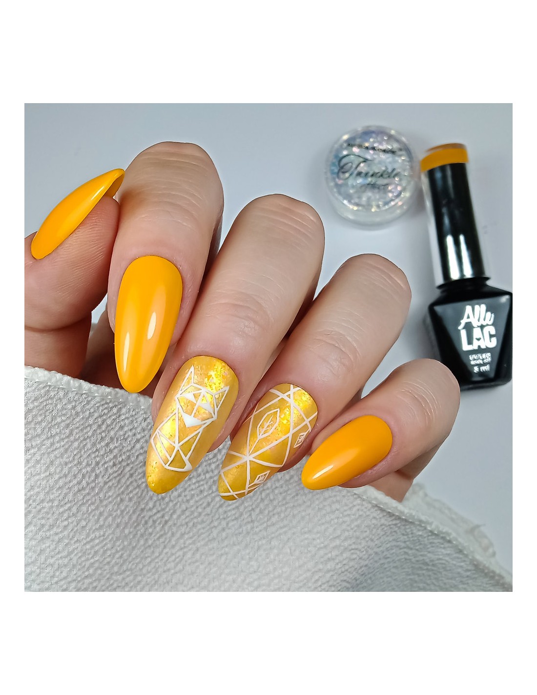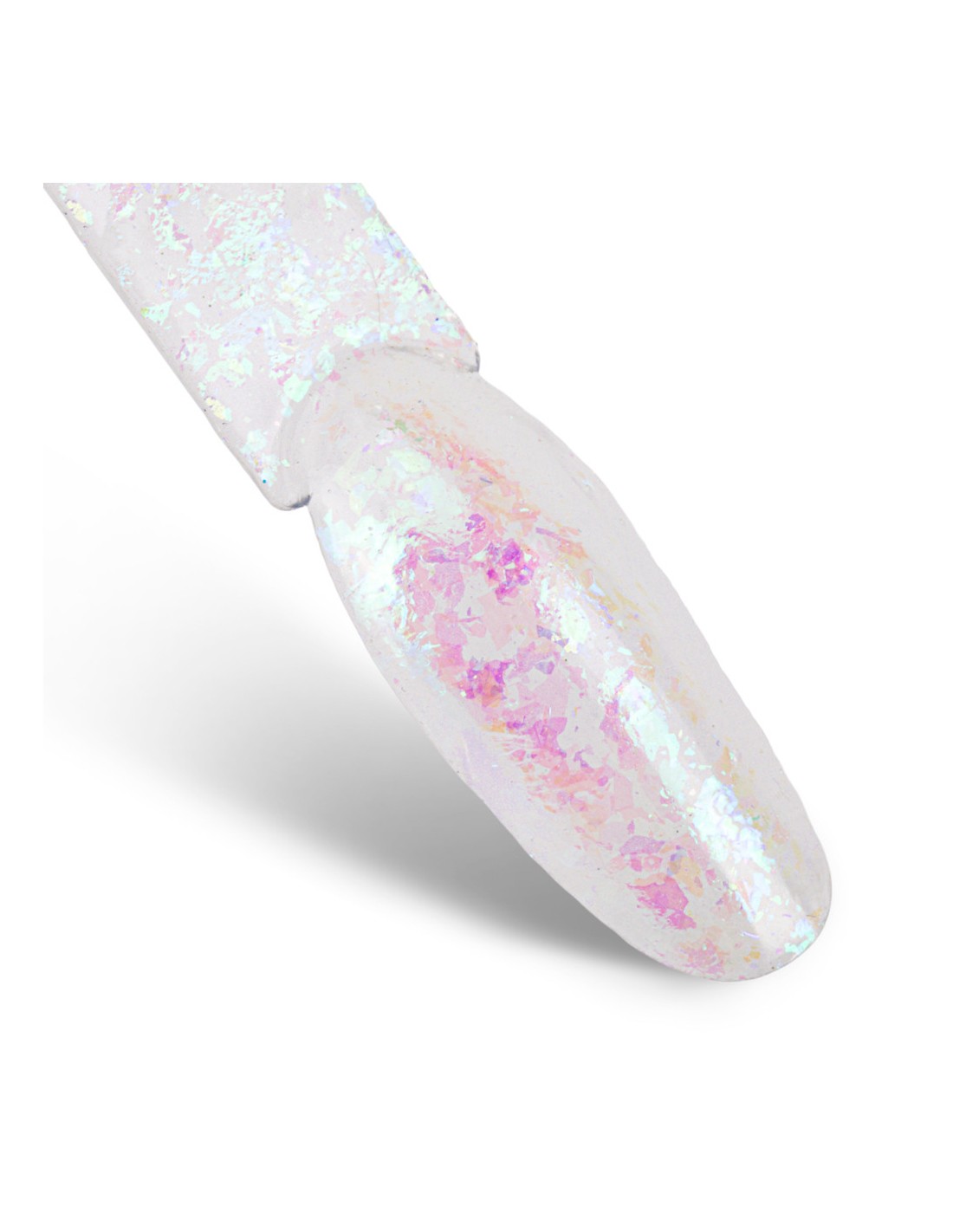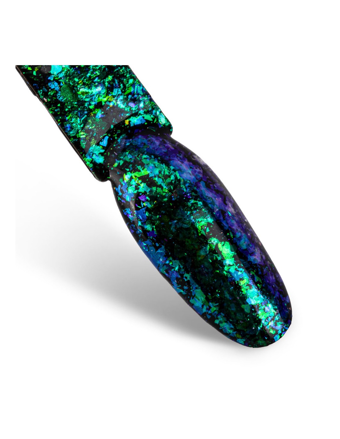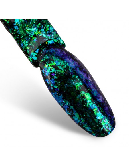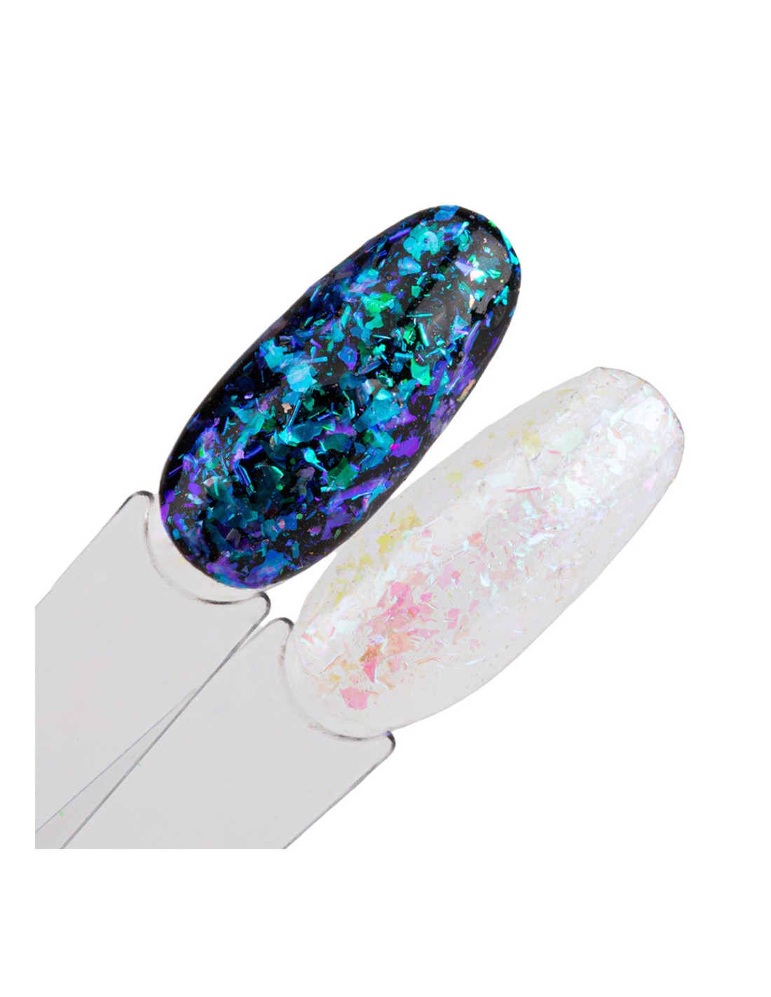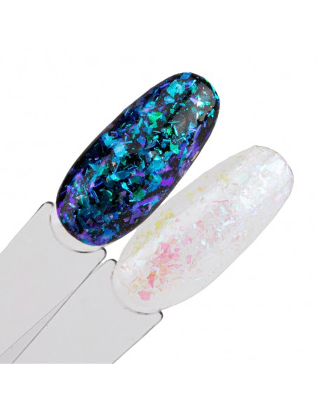 Vi anbefaler å bruke den til pastell- eller neonfarger, men flakene som brukes til mørke farger skaper en ekstremt skinnende og spektakulær effekt.