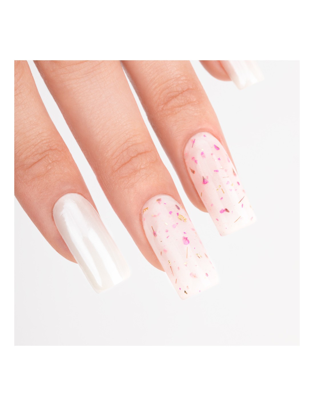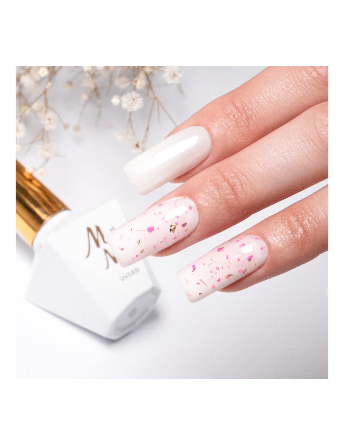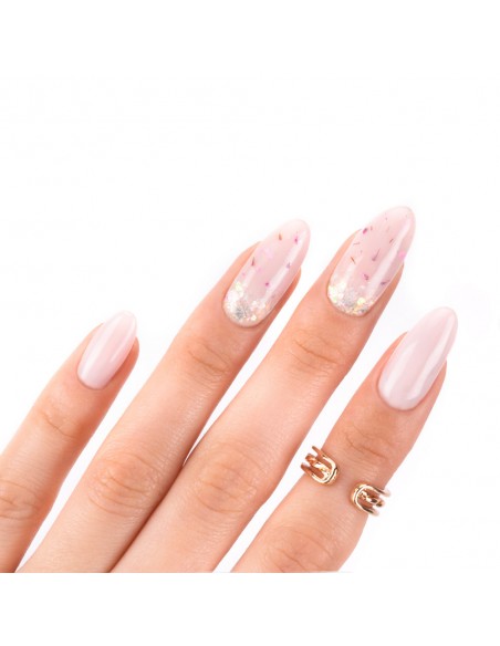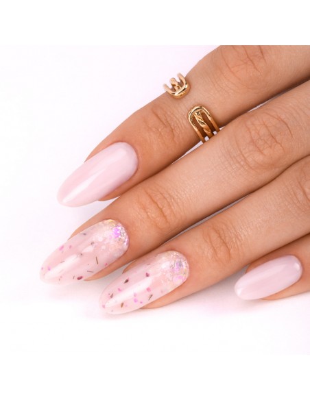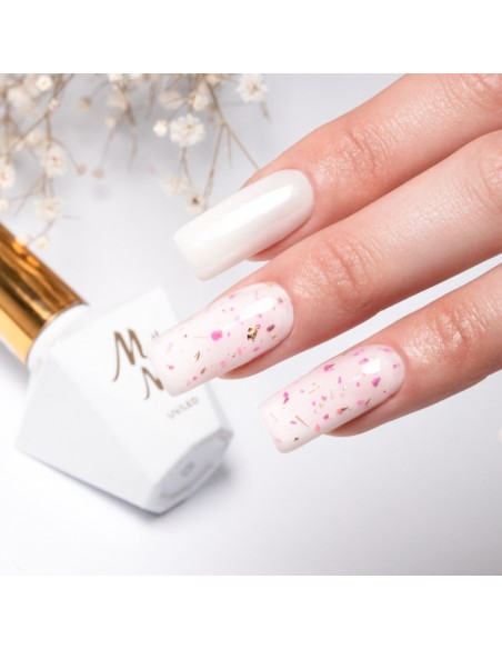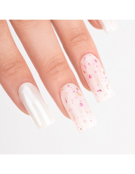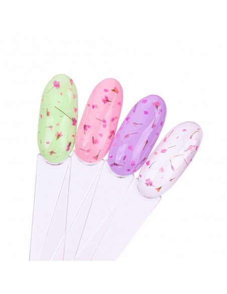 Innovativ hybridlakk med innstøpte, tørkede blomster er et must-have denne våren! Hvis du vil lage delikate, jentete og sjarmerende stiler på neglene dine, bør dette produktet være ditt! Blomster Neglelakk kan påføres over utvalgte hybridlakker eller brukes alene direkte på basen.