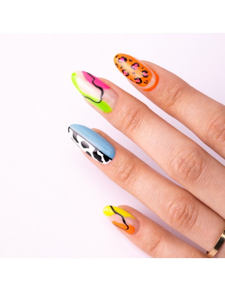 Du kan bruke hele fargepaletten som en glitterfarge uten å fremheve fargen, ved å påføre den direkte på en hybridbase, eller ved å bruke en mørk forsterkning i form av en sort hybrid. Hver av effektene er utenomjordiske og fascinerende!