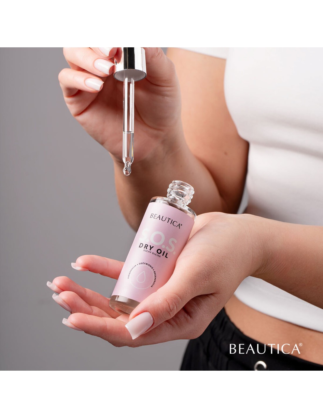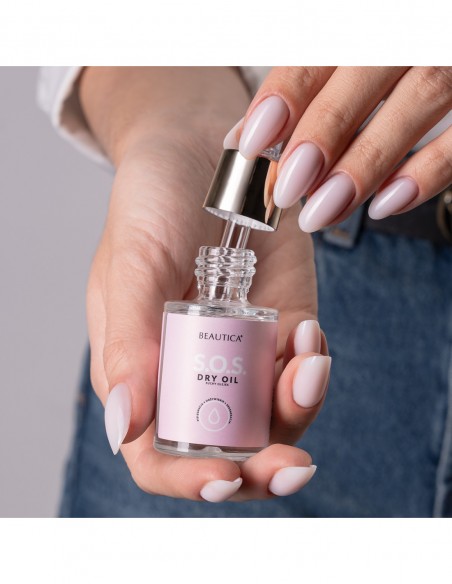 Glem problemer med tørr håndhud og neglebånd rundt neglene! S.O.S Dry Oil er en tørr olje som vil gjøre forventningene til virkelighet. Ved hjelp av én dråpe får du Instagram-kutikula og en effekt du kun kunne beundre på perfekte neglebilder før.