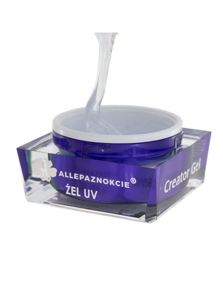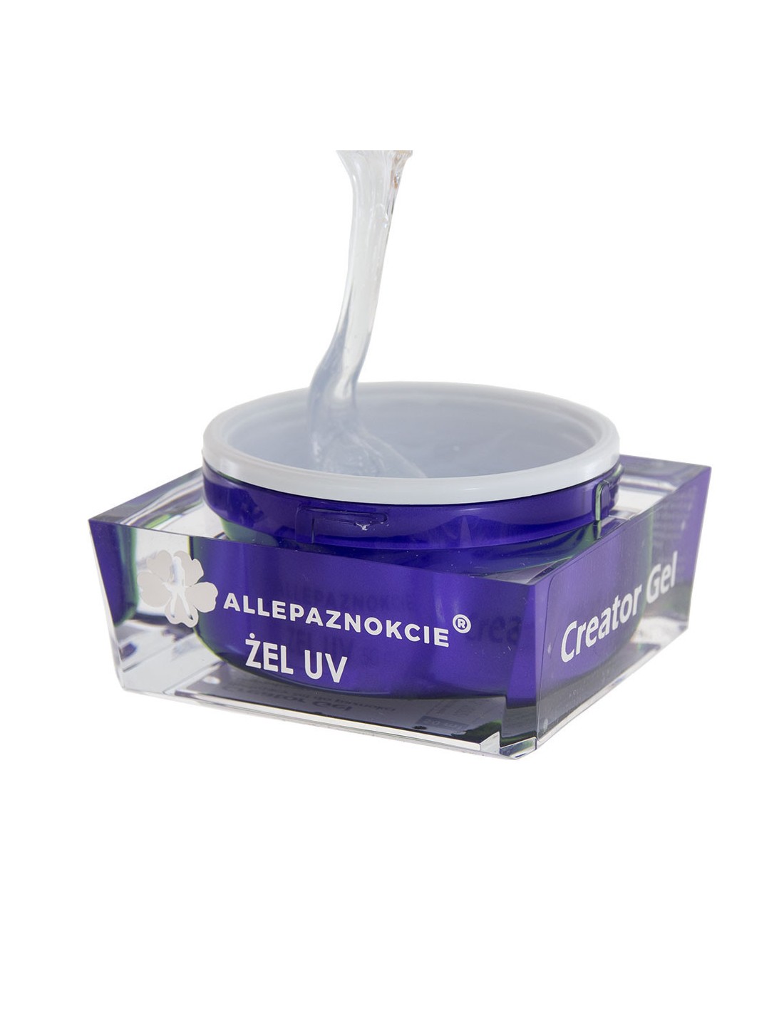Creator Gel er flott for å bygge negleskjelettet, det utvider seg ikke, så vi kan være sikre på at neglene holder en perfekt tunnel. Den er også perfekt for rask korreksjon, slik at du kan jobbe selv på alle negler samtidig, uten å herde dem i prosessen. Gelen er merket med en tykk formel og har en gelékonsistens, uavhengig av temperaturen forblir den samme tetthet.