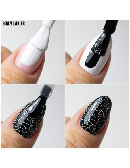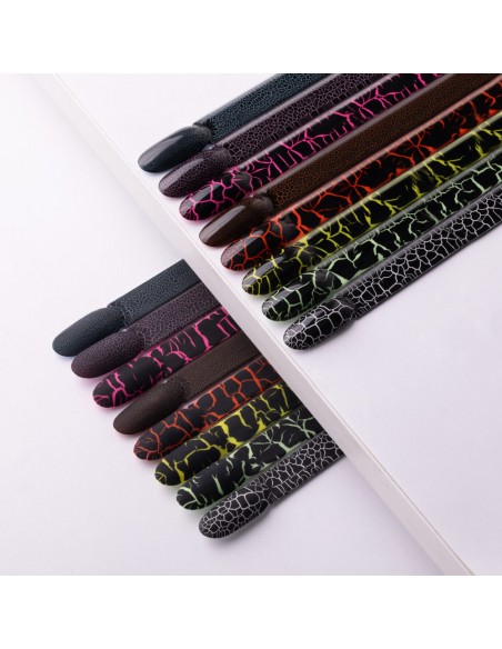 Crackle Gel UV-gellakk er en enkel måte å lage effektive negler på som du kan gjøre på noen få øyeblikk! Denne uvanlige neglelakken lar deg skape effekten av "sprekker" på neglene dine. Du kan kombinere den med hvilken som helst grunnfarge for å lage unike fargekombinasjoner. Det endelige resultatet avhenger av basisproduktet.