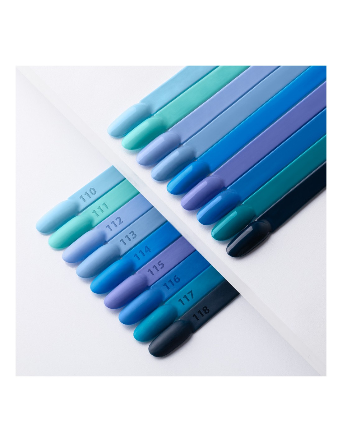 118. Deep Green-Blue - Dette er en intens og dyp nyanse som kombinerer rikdommen av grønt med dybden av blått. Det er en farge som bringer tankene til mørke skoger og dype havvann i de mest mystiske områdene. Deep Green-Blue er uttrykksfull og mystisk, og utstråler styrke og mystikk. Denne nyansen er perfekt for folk som leter etter uvanlige og uttrykksfulle neglestiler som understreker deres individualitet og mot. Deep Green-Blue tilfører eleganse og karakter til hendene, noe som gjør manikyren ekstremt imponerende og unik.