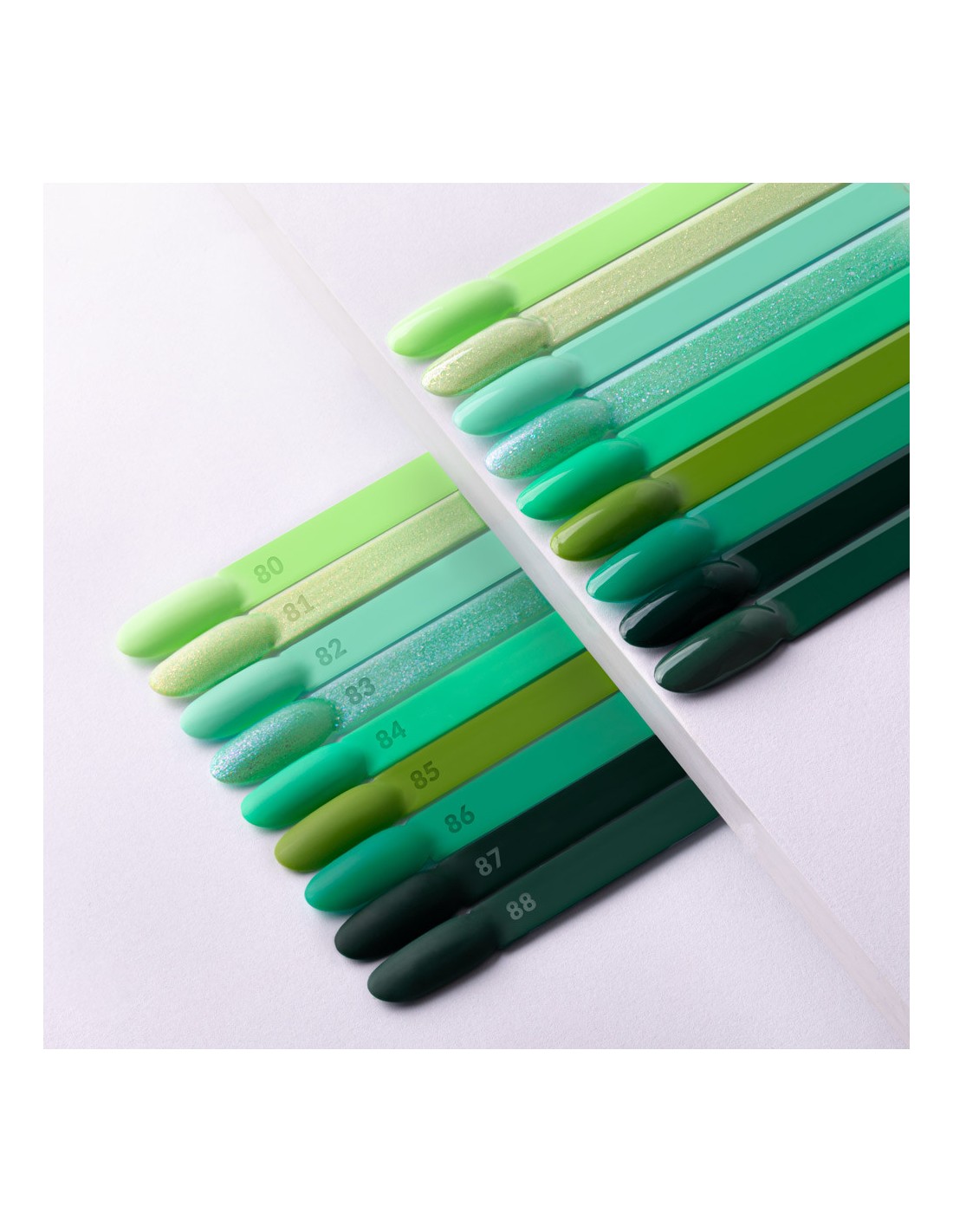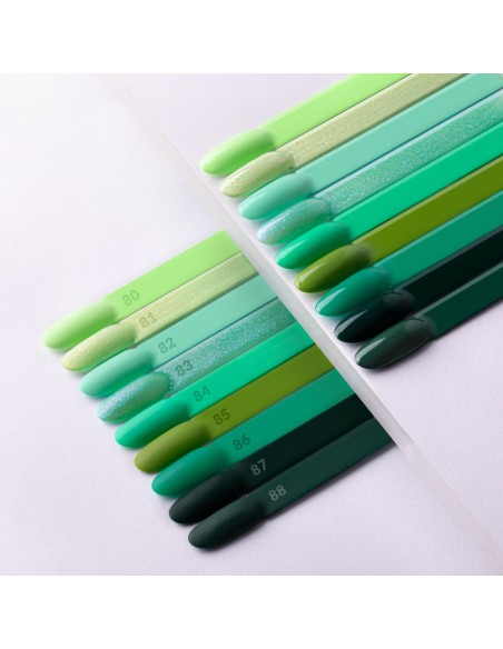 87.Deep Green - Dette er en dyp, intens nyanse av grønn som skiller seg ut med sin rikdom og dybde. Det er en farge som minner oss om det mørkegrønne i skogen, som utstråler naturens styrke og mystikk. Deep Green kan beskrives som majestetisk, uttrykksfull og avgjørende, noe som gjør den til et utmerket valg for de som leter etter sterke, særegne neglestiler. Denne nyansen av grønn er perfekt for de som ønsker å uttrykke sin styrke og besluttsomhet gjennom en stilig og uttrykksfull manikyr.