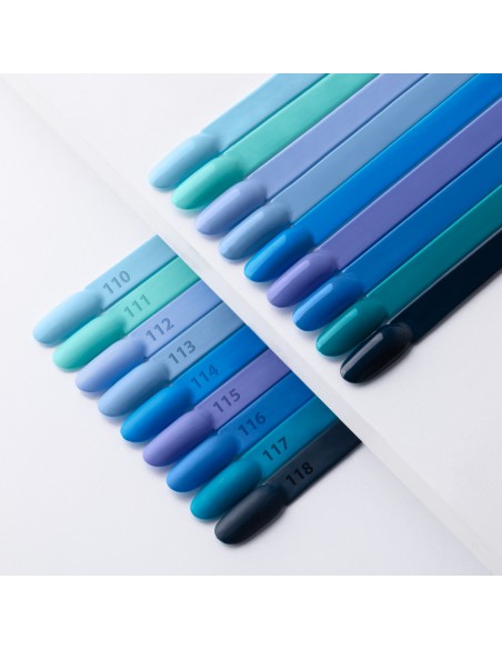 117. Green Blue – Dette er en nyanse som kombinerer intensiteten til grønt med delikatessen til blått. Det er en farge som utstråler harmonien i naturen, og minner oss om de rolige tonene i skogen og havets dyp i stille øyeblikk. Grønnblå er subtil, men uttrykksfull på samme tid, og legger delikat sjarm og eleganse til hendene dine. Denne nyansen er perfekt for folk som leter etter harmoniske og rolige neglestiler som understreker naturlig skjønnhet.