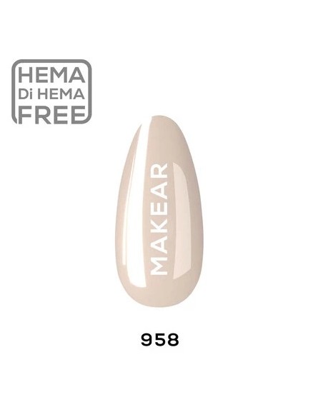958 - En klassisk ren beige tilfører subtil raffinement til neglene, fremhever deres naturlige skjønnhet og gir dem et rolig, men stilig utseende. Den er HEMAFRI.