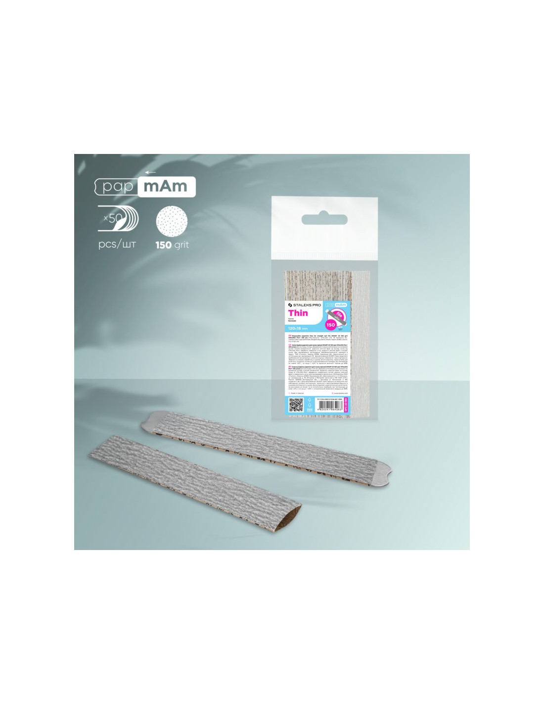 PapmAm – engangsslipemidler i form av limfrie utskiftbare filer som legger på grunnfilen som deksel. Rett form. Passer ideelt til basen i størrelse, og på grunn av dette er de tett festet på den. Trygge myke kanter på papmAm-filen er laget av miljøvennlig håndverkspapir – eliminer muligheten for å kutte klienten med en fil under bruk. Enkel feste og fjerning av filen fra basen. Rengjør verktøyet uten limbiffer etter bruk. Grå slipemiddel SMART – aluminiumoksid, gir skånsom filing av negleplaten. Et spesielt stearatbelegg av filen forhindrer at slipemidlet tetter seg med organisk støv.