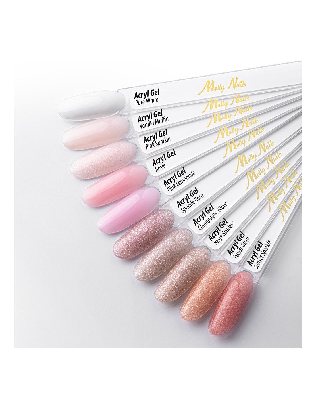 Et revolusjonerende produkt med konsistensen av en tykk mousse tilgjengelig i nye, unike farger. Acrylgel Molly Nails er et produkt med styrken til akryl og fleksibiliteten til gel. Den tykke konsistensen tillater ekspressmodellering og styling av negler. Den er egnet for å styrke den naturlige negleplaten og raskt forlenge negler ved hjelp av doble former og tradisjonelle maler.