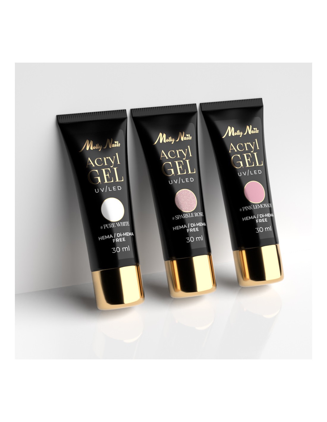 Et revolusjonerende produkt med konsistensen av en tykk mousse tilgjengelig i nye, unike farger. Acrylgel Molly Nails er et produkt med styrken til akryl og fleksibiliteten til gel. Den tykke konsistensen tillater ekspressmodellering og styling av negler. Den er egnet for å styrke den naturlige negleplaten og raskt forlenge negler ved hjelp av doble former og tradisjonelle maler.