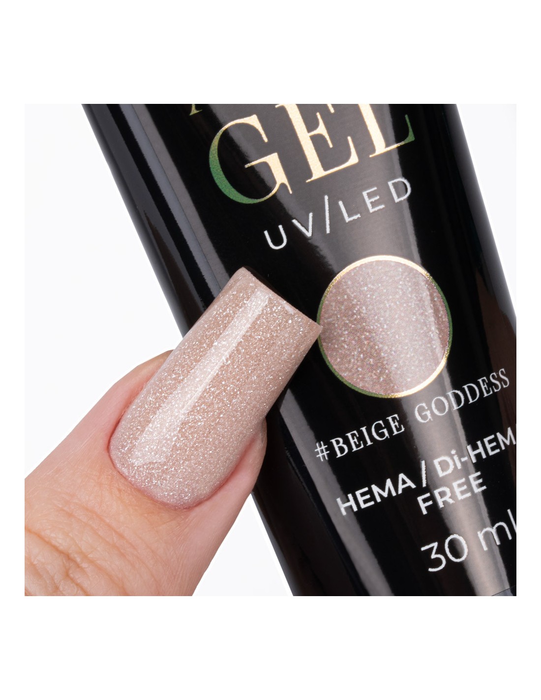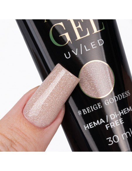 Beige Goddess - en beige nude med sølv, glitrende partikler.