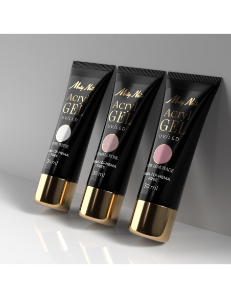 Et revolusjonerende produkt med konsistensen av en tykk mousse tilgjengelig i nye, unike farger. Acrylgel Molly Nails er et produkt med styrken til akryl og fleksibiliteten til gel. Den tykke konsistensen tillater ekspressmodellering og styling av negler. Den er egnet for å styrke den naturlige negleplaten og raskt forlenge negler ved hjelp av doble former og tradisjonelle maler.