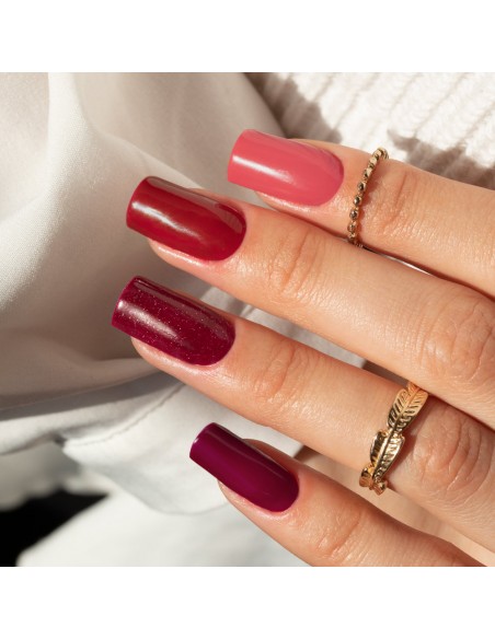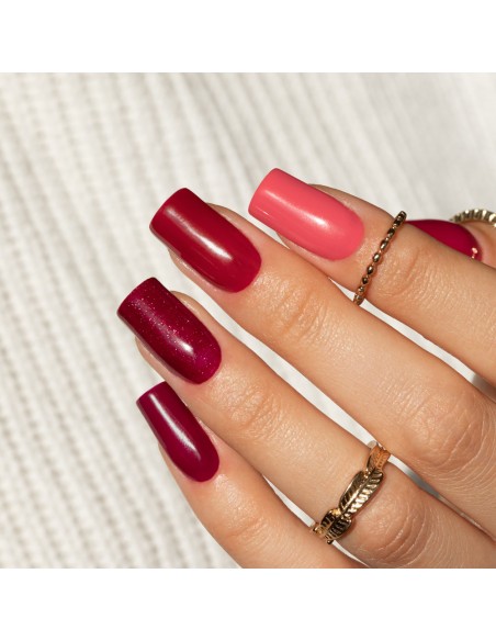 Hybridlakk nummer 194 - mettet rød med litt burgunder som vil gi neglene karakter.