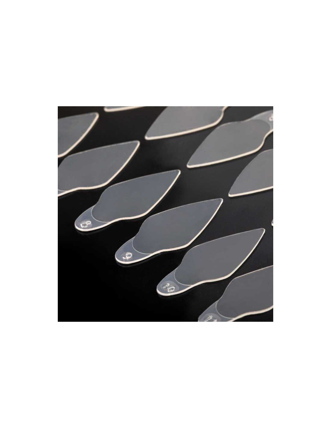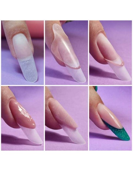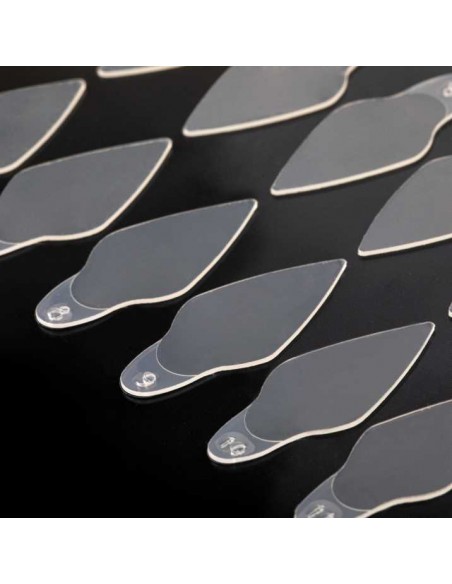 Bli kjent med selvklebende klistreformer som vil gjøre arbeidet ditt enklere, og du kan enkelt lage vakre linjer med fransk konstruksjon. Disse klare, selvklebende formene lar deg lage en perfekt smilelinje og bygge negler raskt og enkelt.