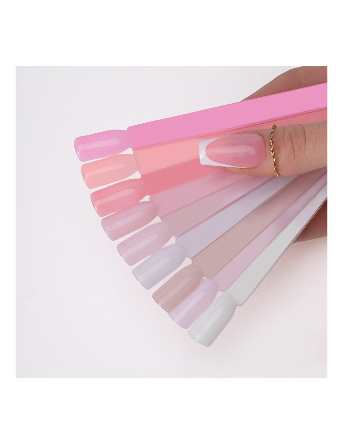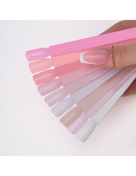 Ntn Premium Delicate French neglelakkkolleksjonen inkluderer ni nyanser som utfyller hverandre perfekt. En palett med semi-transparente farger perfekt for å lage en elegant fransk manikyr, en subtil babyboomer-styling eller delikat, feminin, ren styling.