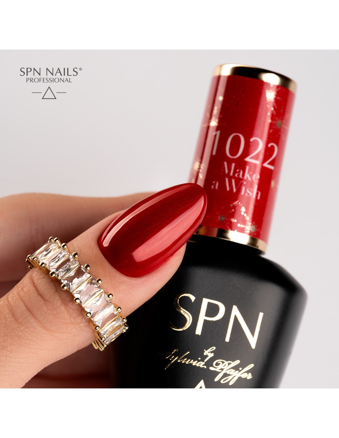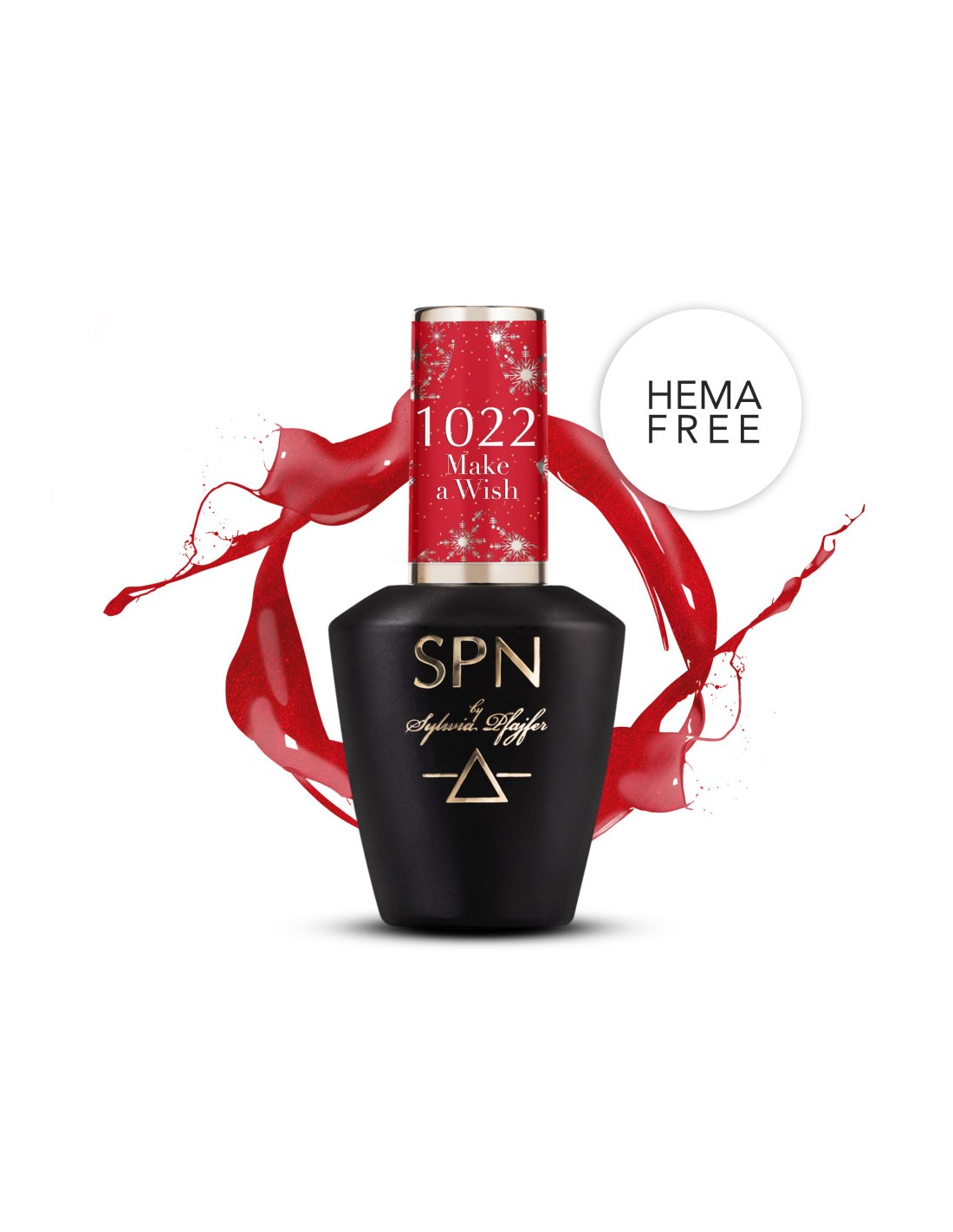 1022 Make a Wish - rød hybridlakk med partikler fra Santa Team SPN Nails-kolleksjonen