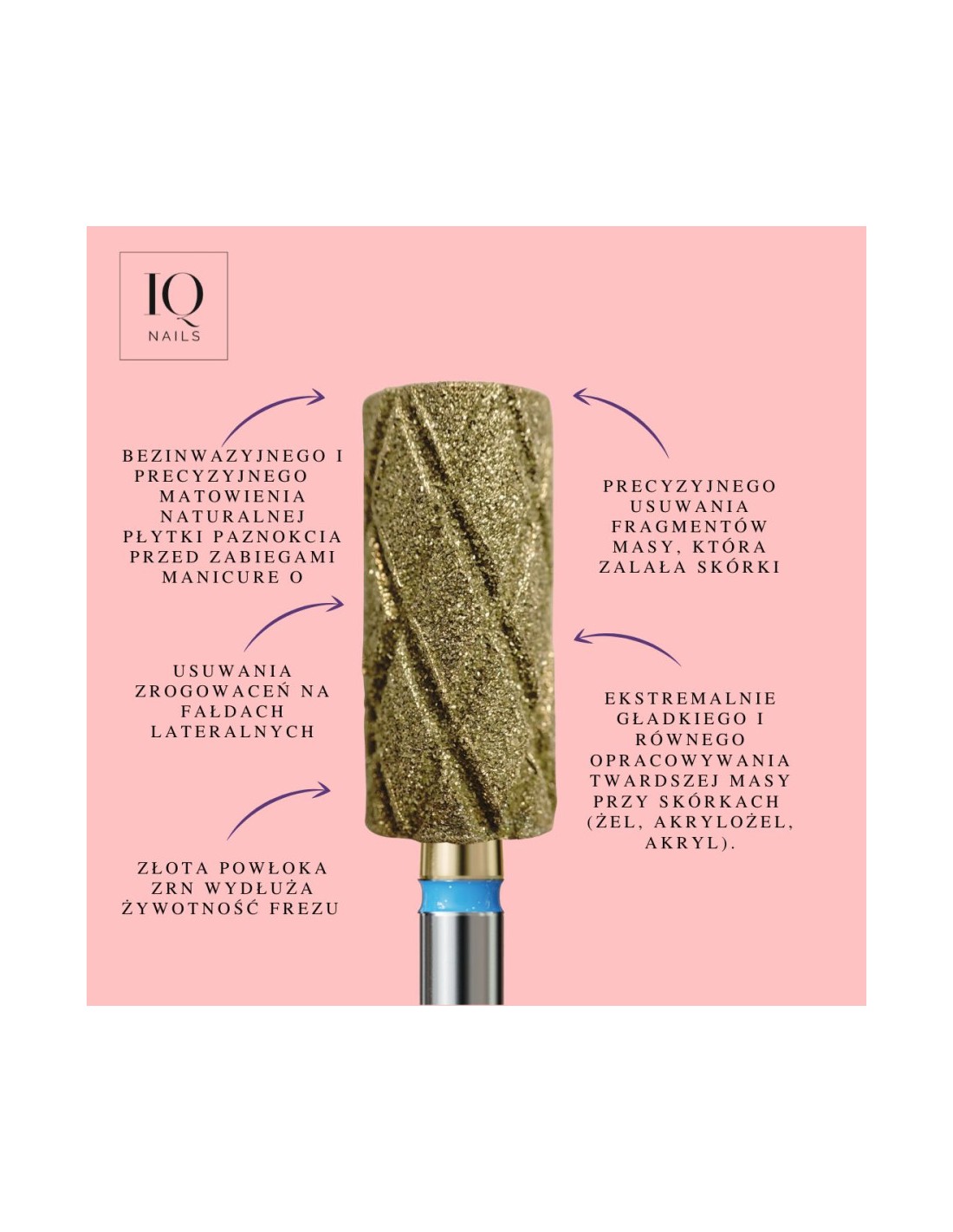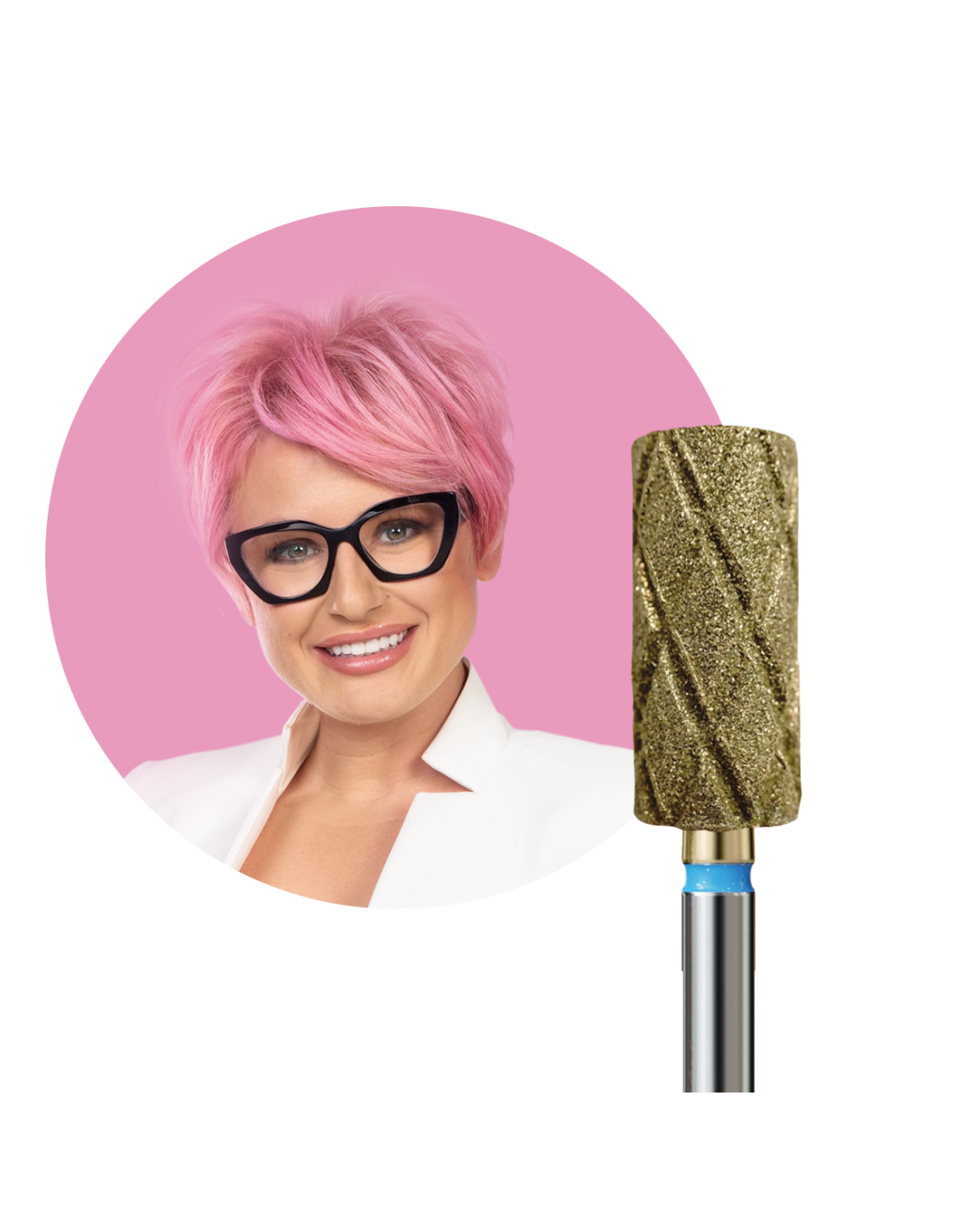 Diamantfreser (111.X524.050ZRN) med standard korn gir litt større interferens. Deres sylindriske form og blå stripe gjør dem ideelle for det første stadiet av hudutvikling.