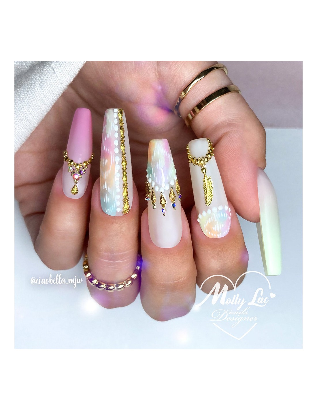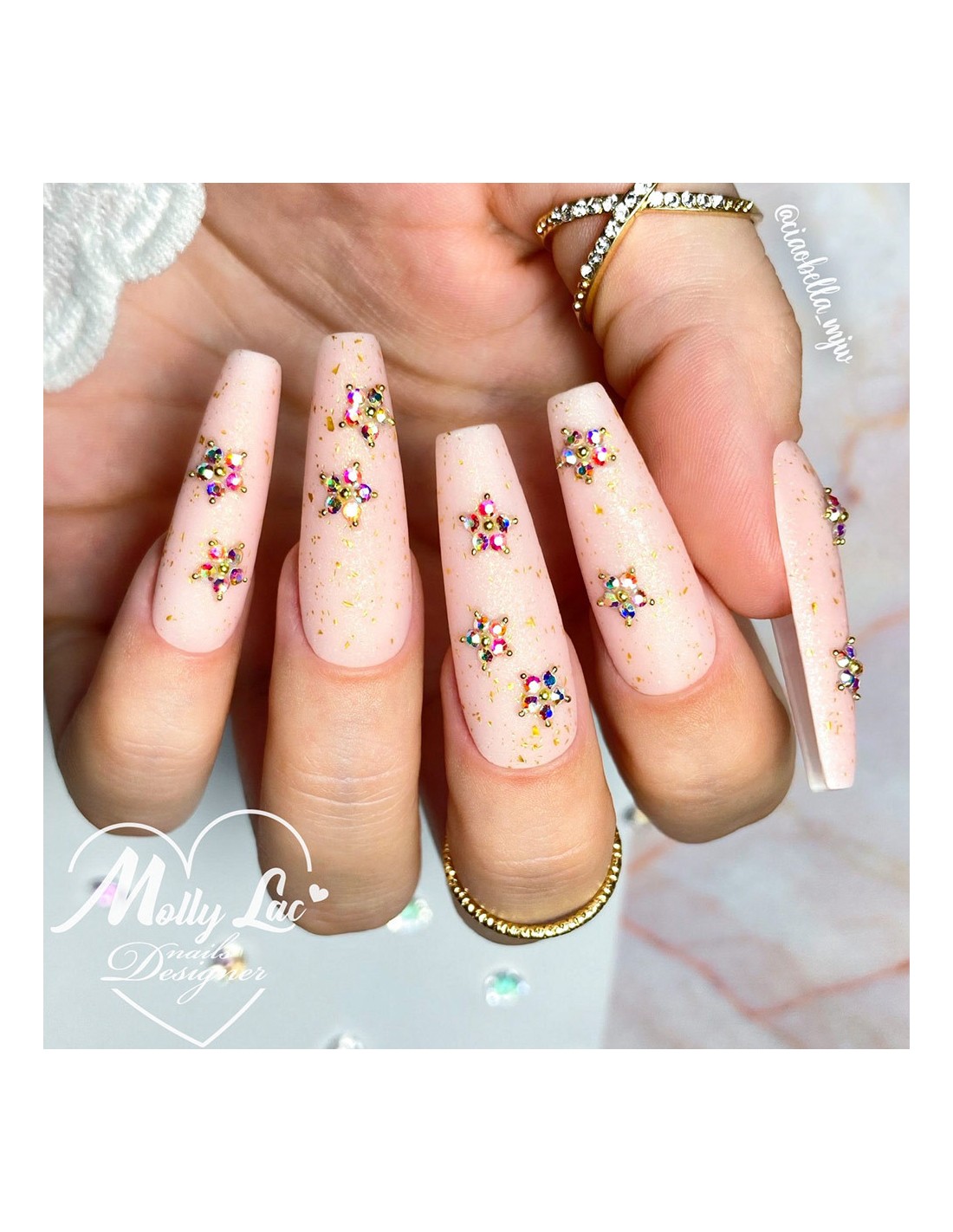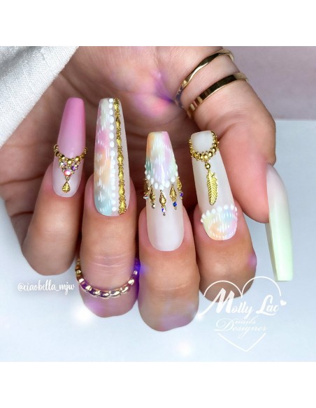 Veldig imponerende rhinestones brukt til å dekorere negleplaten ved hjelp av gel- eller akrylmetoden, hybrid eller lakk. Også brukt med hell for styling av naturlige negler.