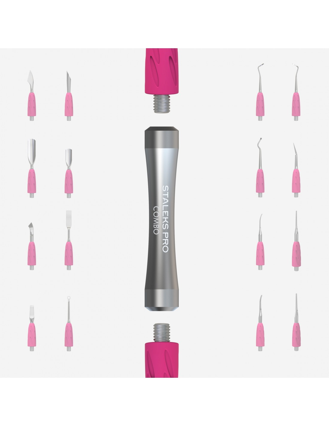 Håndtak til utskiftbare arbeidsdeler til COMBO UNIQ-verktøyet er en del av en innovativ modul pusher som lar teknikere velge og kombinere arbeidsdeler for å oppnå det perfekte resultatet. UNIQ COMBO er det beste valget hvis du vil designe drømmenes pusher!