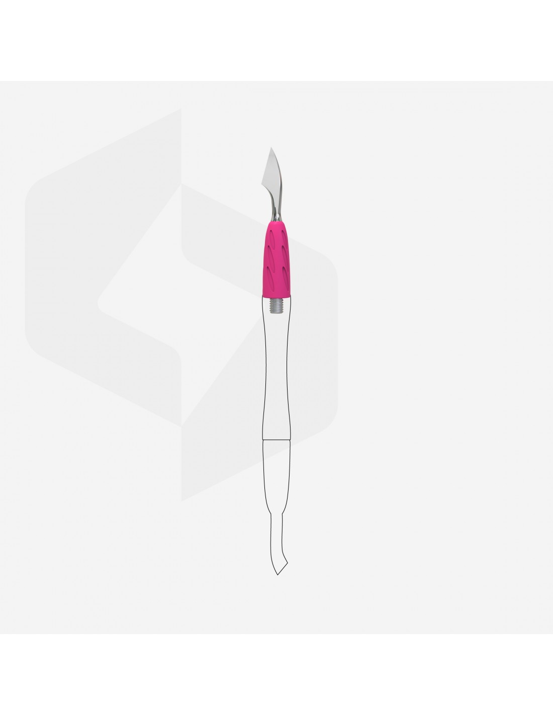 "Cleaner" er designet for grundig rengjøring av negleplaten fra pterygium, og behandling av laterale neglefolder og fri kant under manikyr og pedikyr.