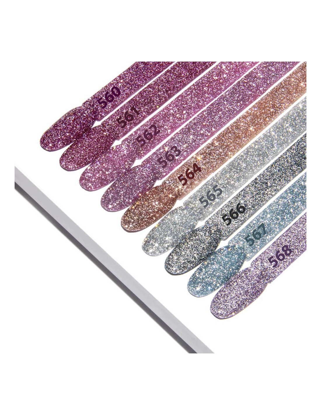 560. En dempet nyanse av rosa-lilla med et hint av grått og full av glitrende partikler. Dette er en farge som ikke kunne mangle i denne kolleksjonen!
