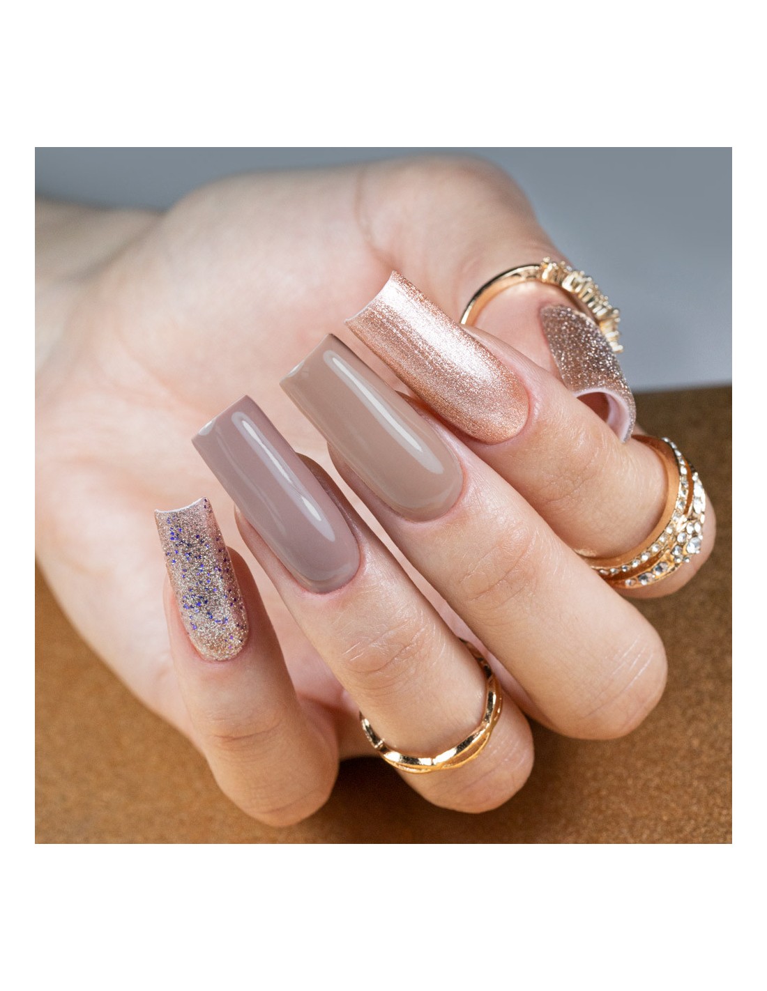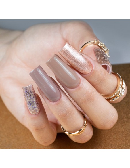 564. En nydelig, forførende farge for enhver anledning – finnes det noe vakrere enn den gylne fargen til en hybridlakk? Selvfølgelig, gull med sølvstøv.