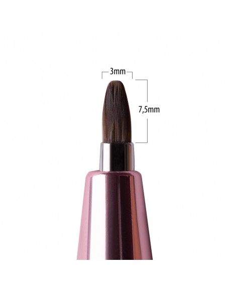 En flat og smal børste formet som en kattetunge er perfekt for å jobbe med gelmetoden. Denne presise børsten lar deg fordele og jevne ut gelen perfekt på negleoverflaten og påføre den perfekt inntil neglebåndet. Dens mangfold av bruksområder vil også la deg lage realistiske blomstermønstre. Takket være en spesiell mekanisme som lar deg raskt trekke tilbake børstehårene, beskytter du dem mot bøying og skade.