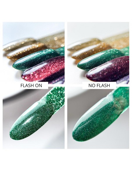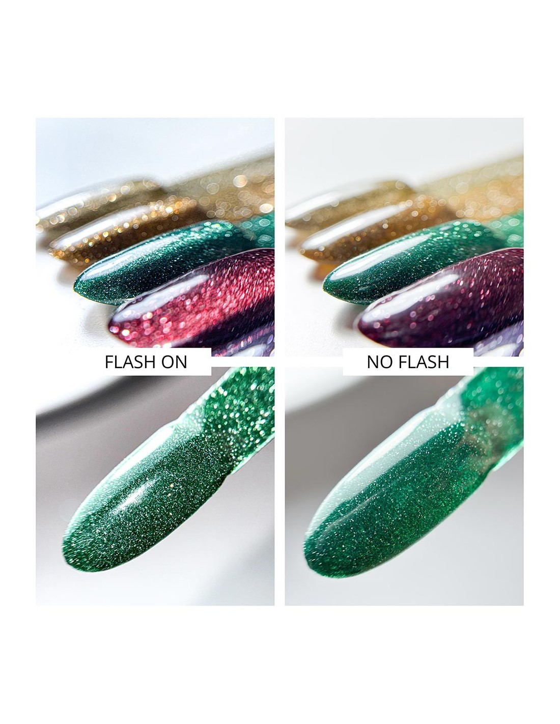 612. Poison Ivy - A silver glow immersed in a green tone. This color is a must-have in your collection. Go for exceptional glam and don't be afraid to play not only with color but also with light, which will transform your hands.