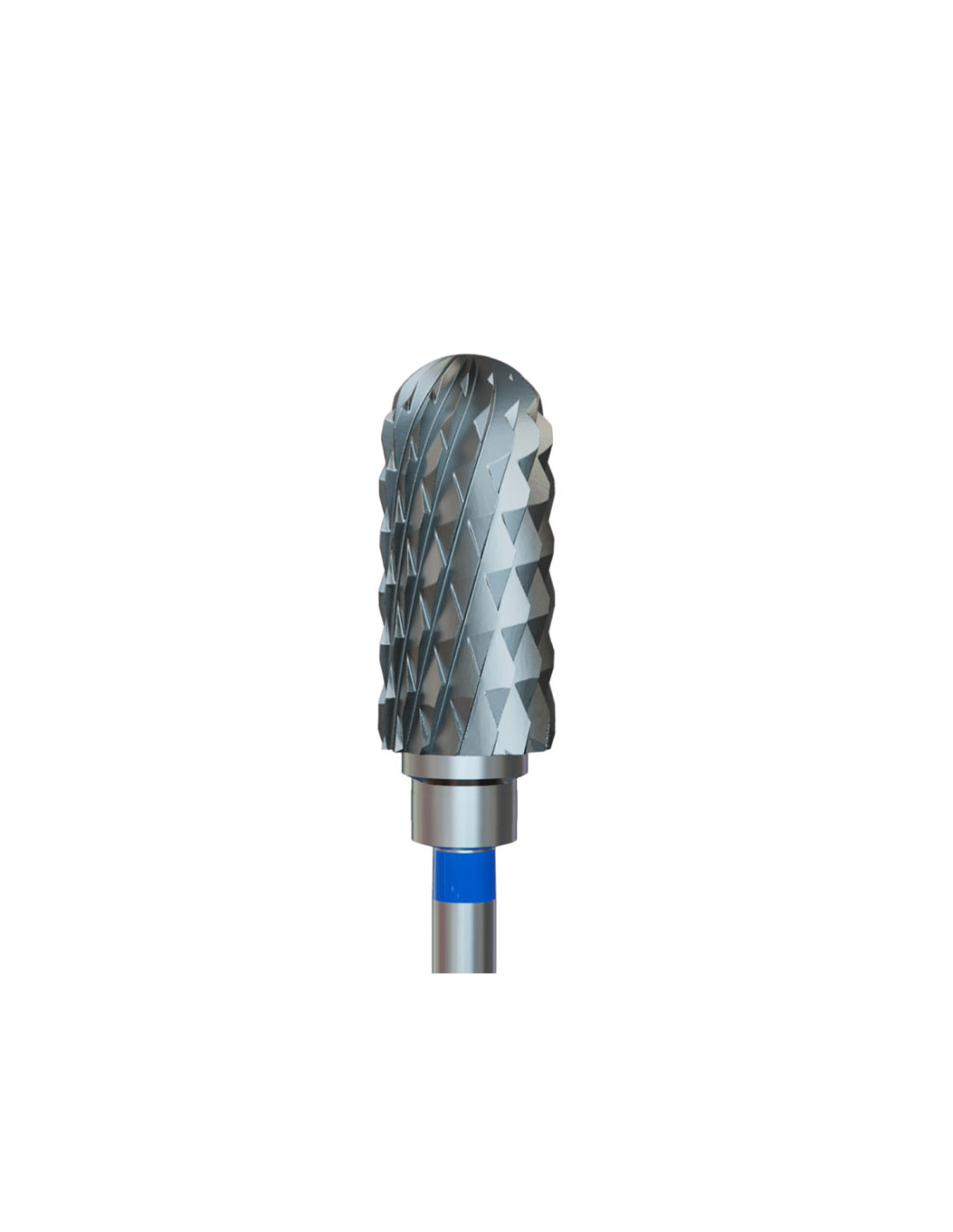 Karbidfreser (137.190.060) finner sin anvendelse i både kosmetologi og fotpleie. Sylinderformen og den blå stripen gjør den ideell for rask fjerning av gel og akryl.