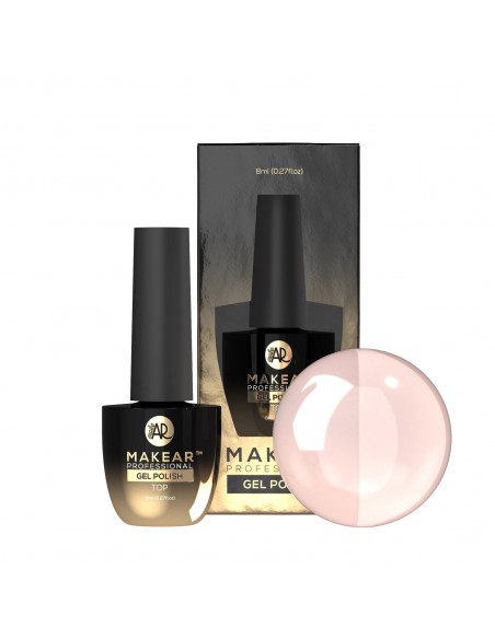 Top No Wipe Milky Makear er en hybrid topplakk som ikke krever avtørking, og som passer perfekt til enhver manikyr med en subtil melkerosa fargetone. Takket være den semi-transparente formelen er den ideell for stiler som babyboomer, ombre eller fransk manikyr. Den jevner ut overganger mellom farger, maskerer mindre ufullkommenheter fra hybridpåføring og gir nyanser en fin finish.
