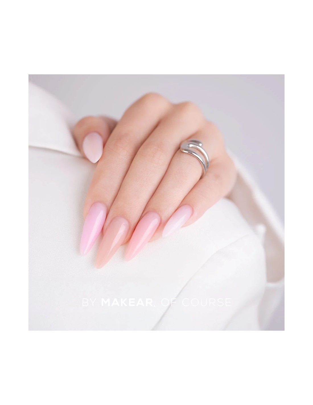 Top No Wipe Milky Makear er en hybrid topplakk som ikke krever avtørking, og som passer perfekt til enhver manikyr med en subtil melkerosa fargetone. Takket være den semi-transparente formelen er den ideell for stiler som babyboomer, ombre eller fransk manikyr. Den jevner ut overganger mellom farger, maskerer mindre ufullkommenheter fra hybridpåføring og gir nyanser en fin finish.