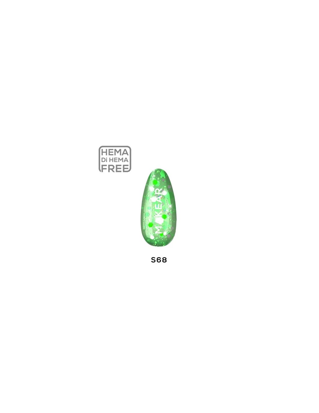 Grønn UV-gellakk med store glitterpartikler er perfekt for negleteknikere som ønsker å skape unike og blendende utseender. Denne glitrende gel-lakken er ideell for Princess Nails, hvor glitteret tilfører eksklusivitet og eleganse. Den semitransparente fargebasen er perfekt for ombre-effekter, spesielt for lette, sommerlige design. Den kan også brukes til klassisk fransk manikyr.