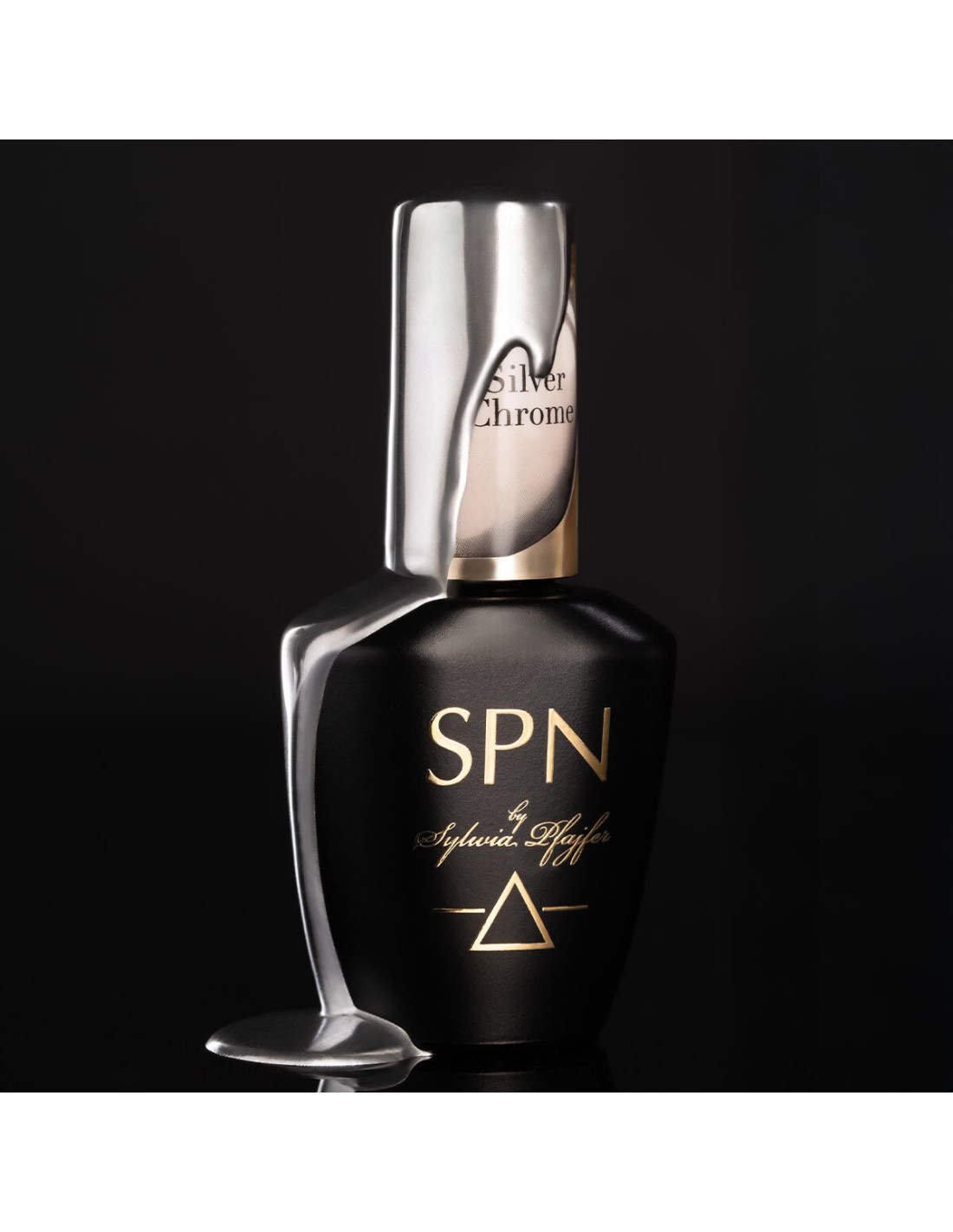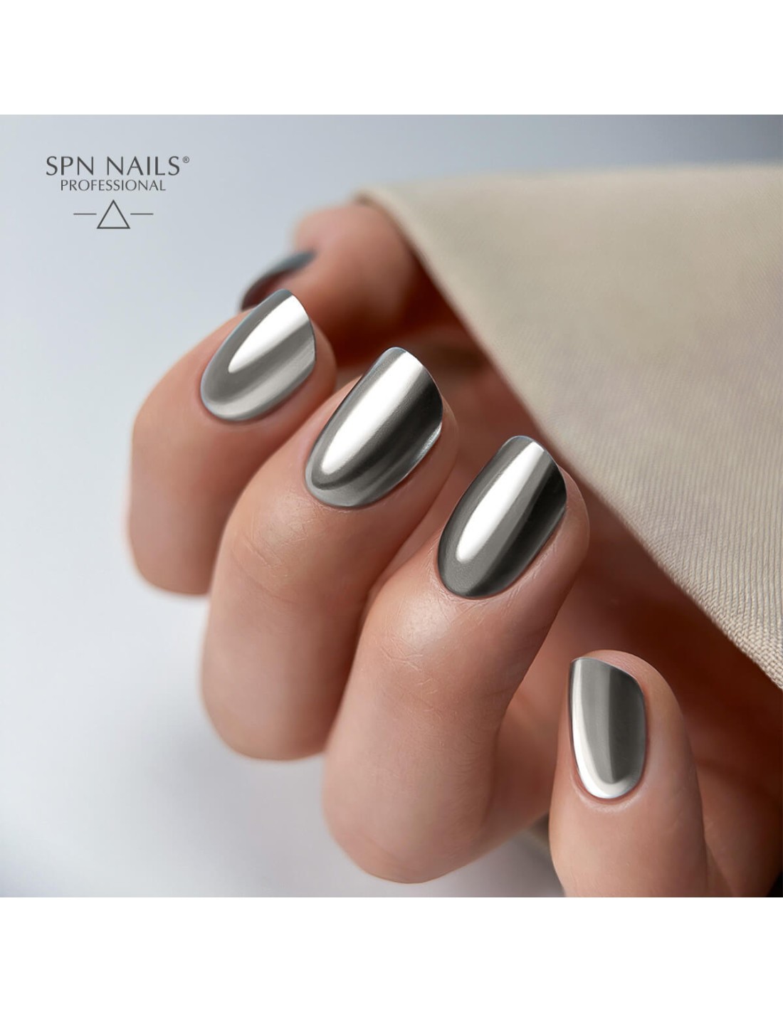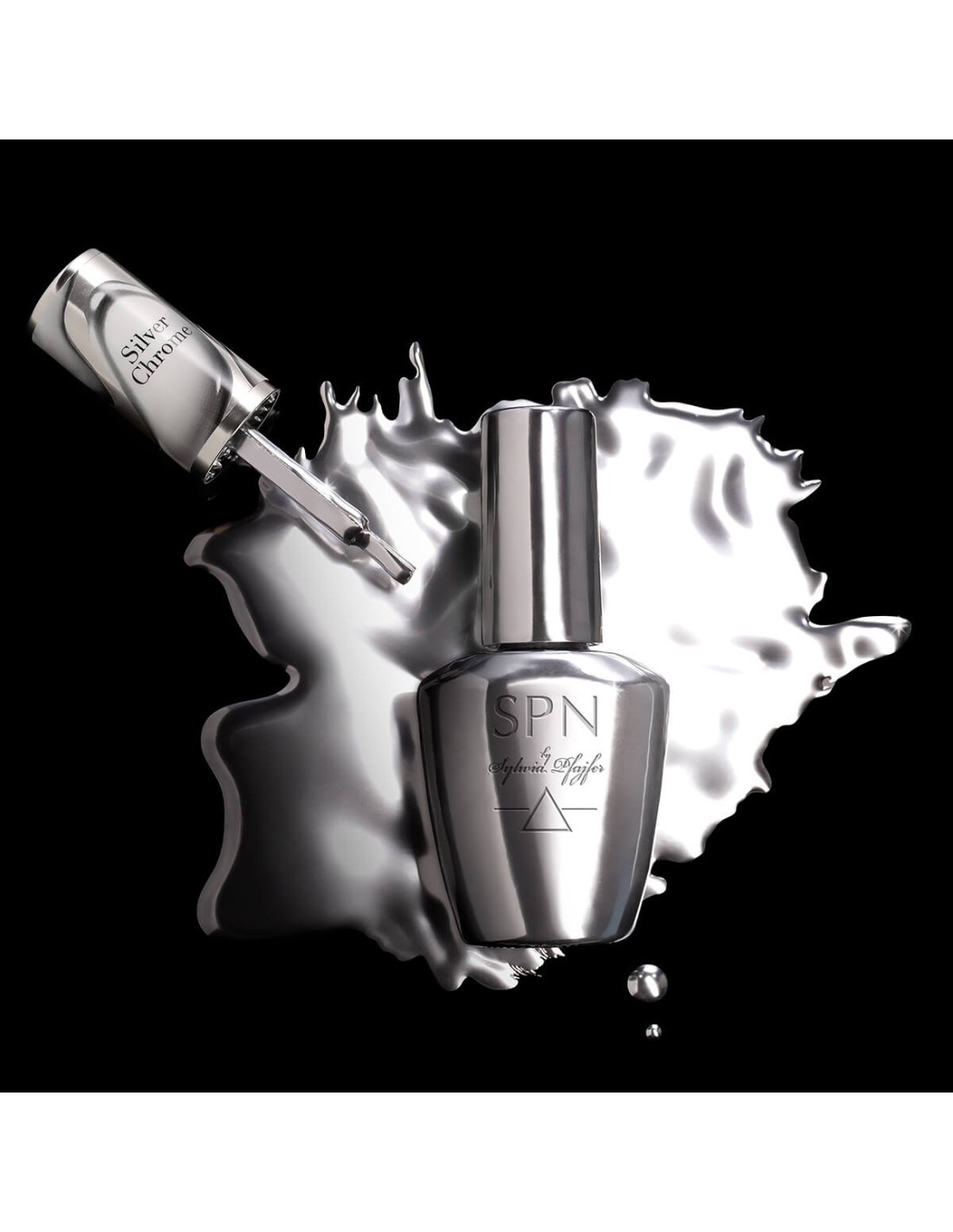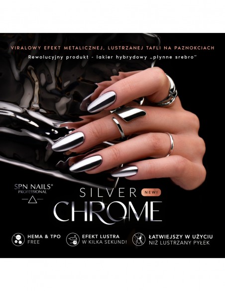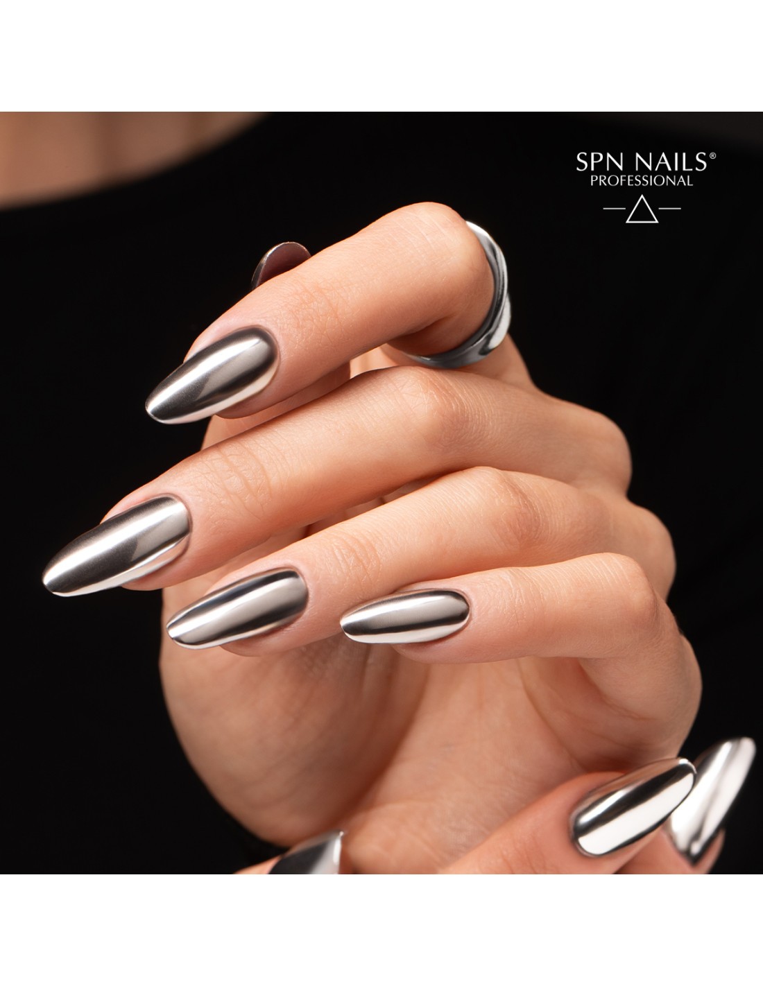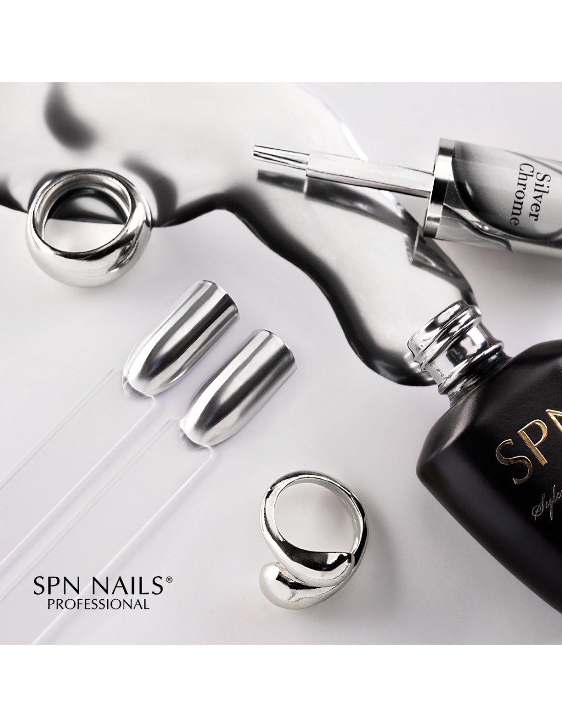 Hybrid neglelakk flytende Sølvkrom SPN Nails.