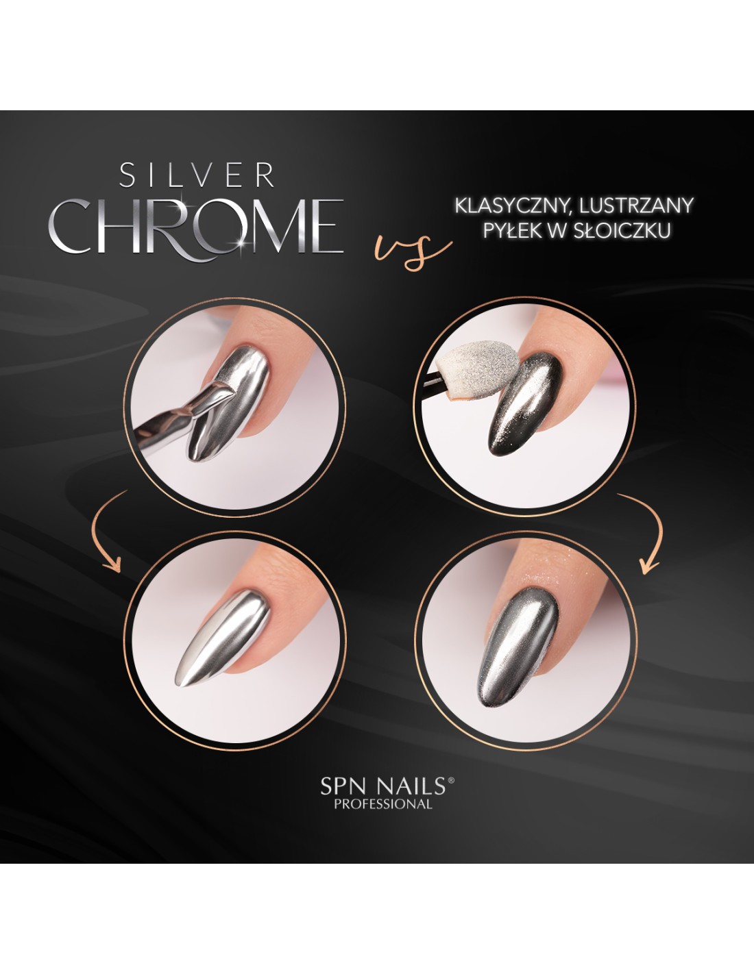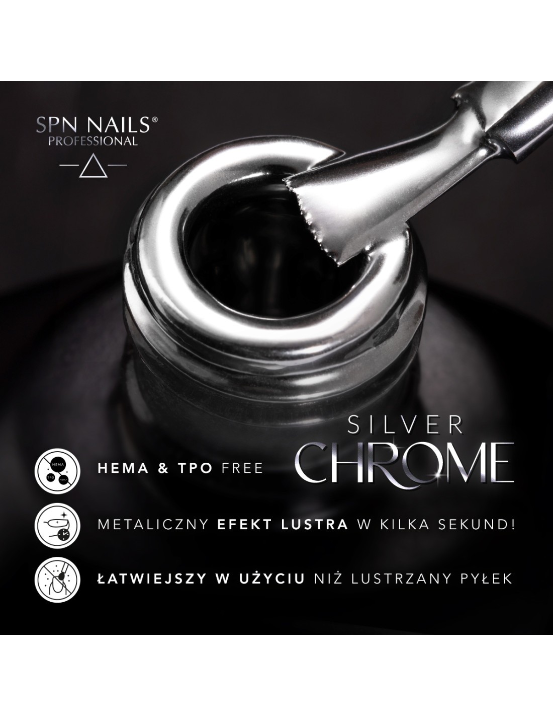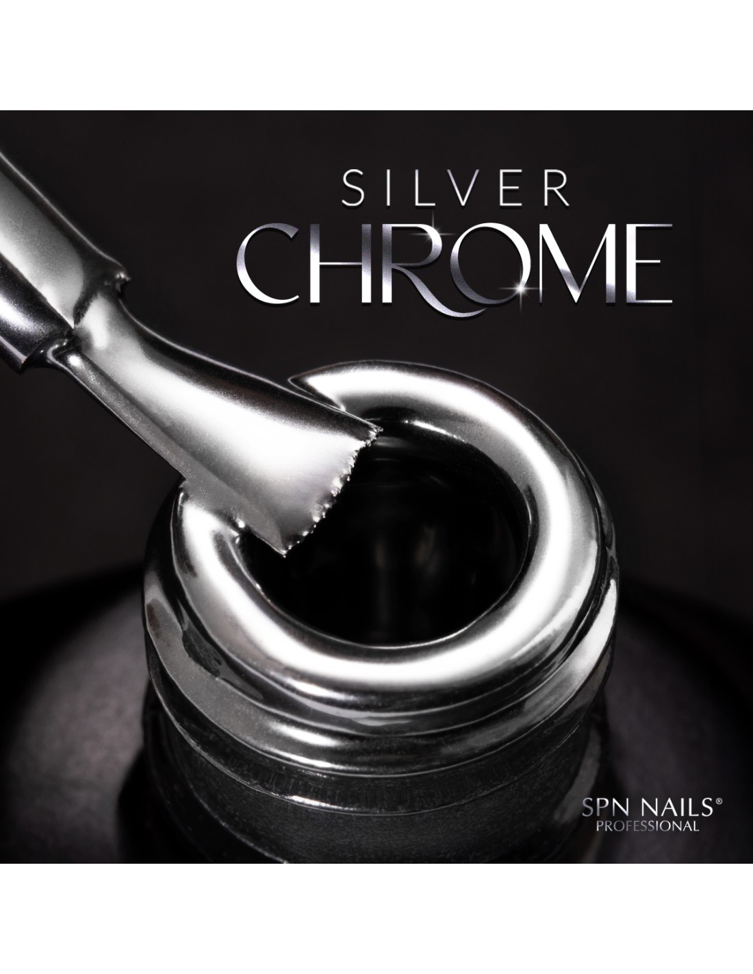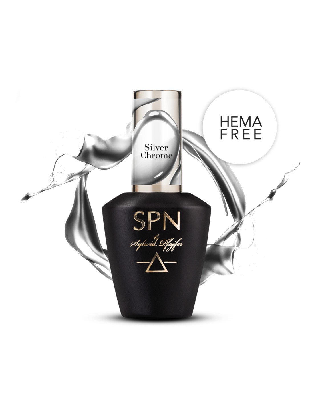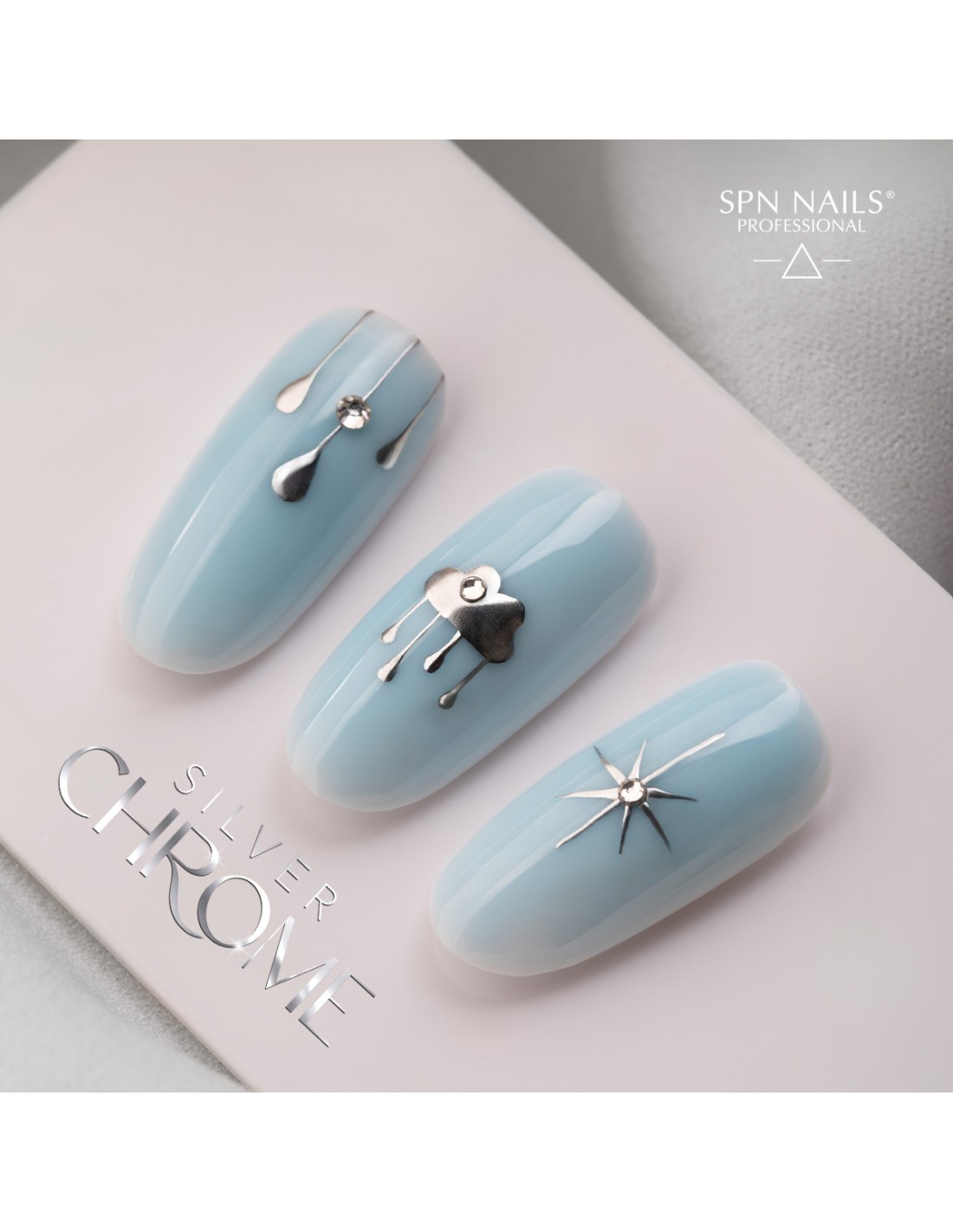 Hybrid neglelakk flytende Sølvkrom SPN Nails.