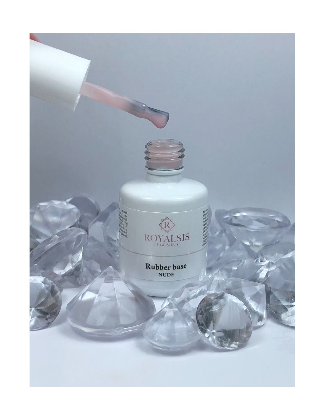 Nudefarget gummibase - perfekt selvutjevnende produkt for forsterkning av naturlige negler, fleksibel og enkel å påføre.