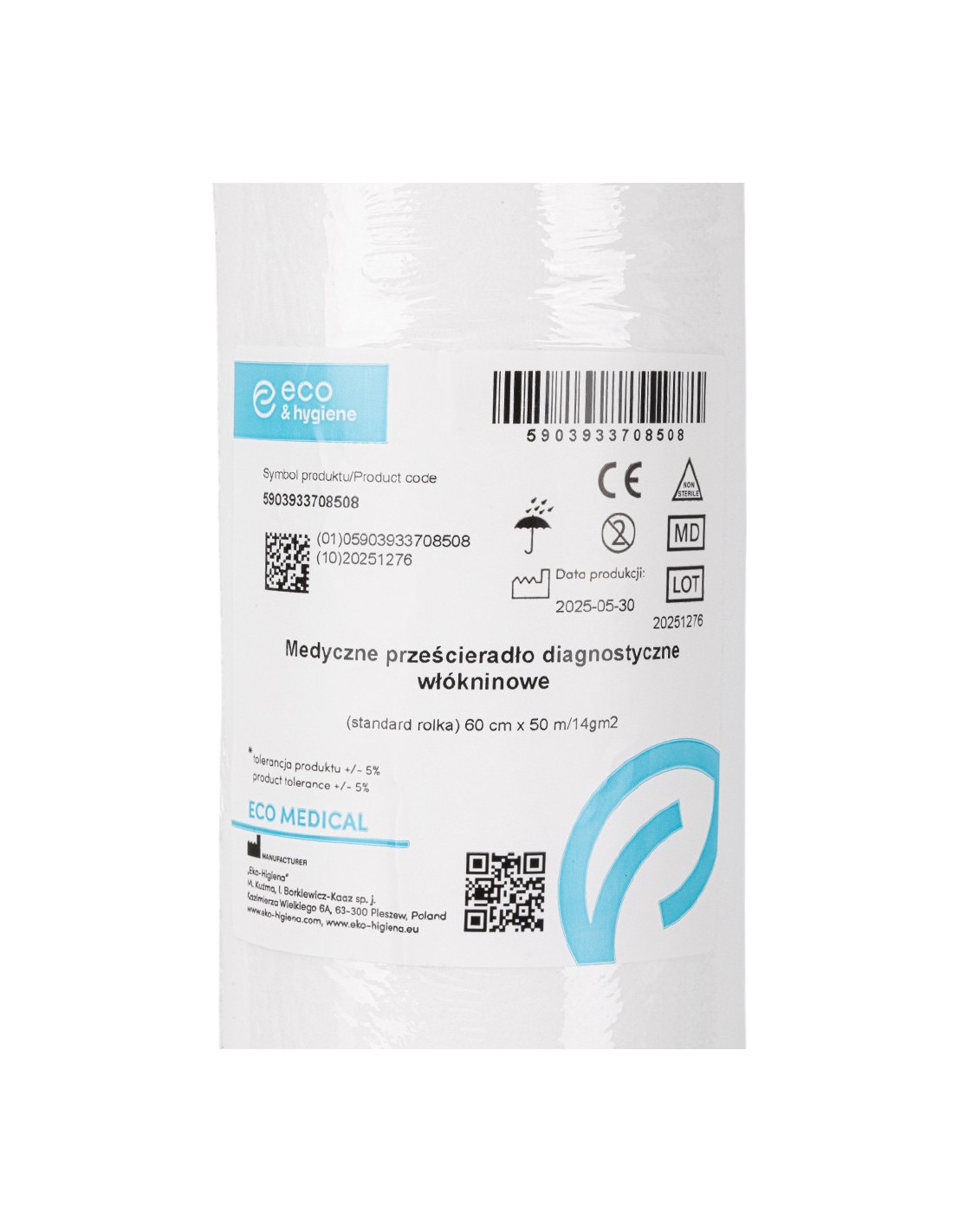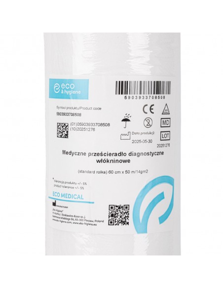 Eco&Hygiene engangs medisinsk laken, ikke-vevd, 60 cm x 50 m, hvit.