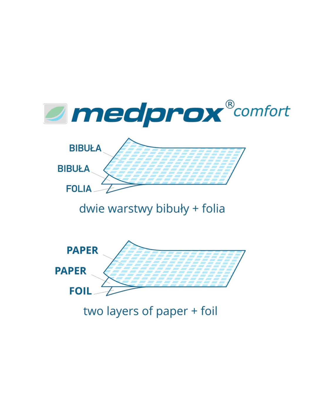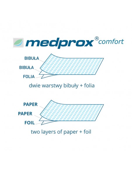 Medprox Comfort er et hygienisk beskyttelsesunderlag, 30 cm bredt og perforert hver 50 cm, bestående av tre lag: to lag med silkepapir og et folielag. Medprox Comfort-underlaget sikrer et høyt hygienenivå under prosedyrer.