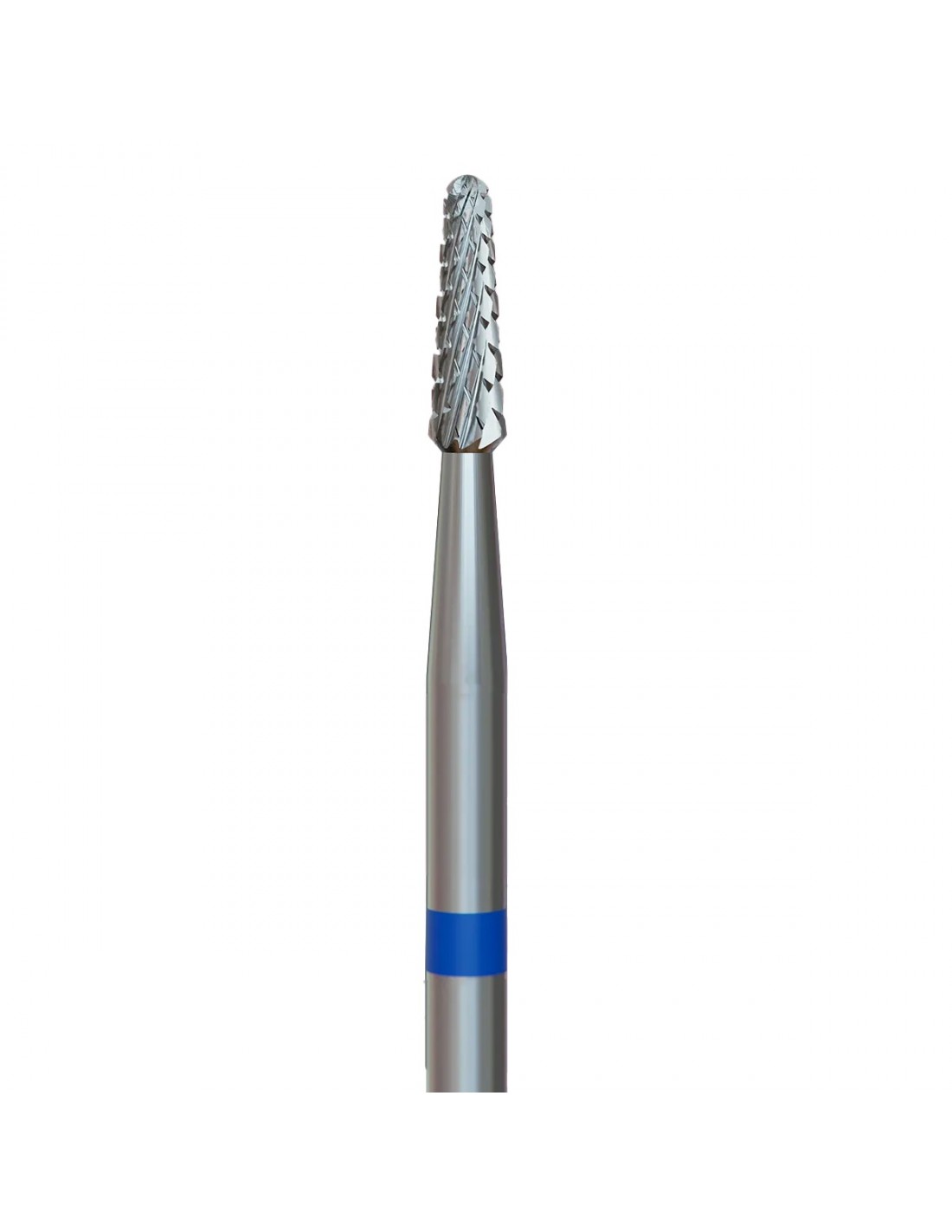 Denne karbidfreseren (198.190.023) brukes både i kosmetologi og fotpleie. Den koniske formen og den blå stripen gjør den ideell for forming av neglebånd.