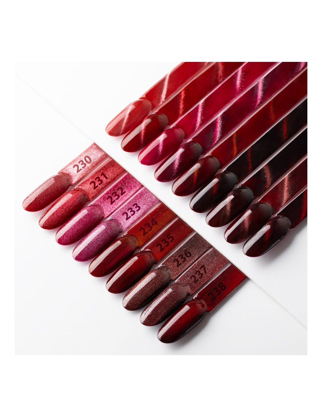 Fordyp deg i eleganse og en mystisk glød! Vår kolleksjon av magnetiske Cat Eye Red gel-neglelakker har 9 unike nyanser av rødt – fra mørk vin, via rubinrød til intens burgunder.