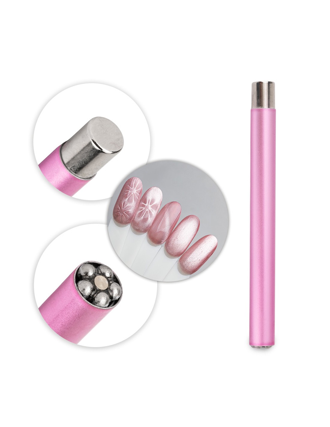 En multifunksjonell, dobbeltsidig neglestylingmagnet designet for cat-eye neglelakk. Den lar deg skape unike effekter – fra klassiske linjer og blomster, via strålende mønstre, til 3D-dybde.