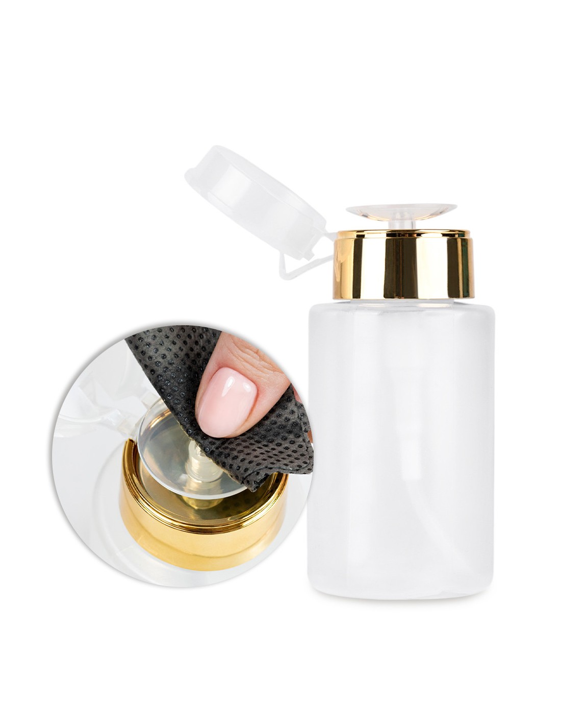 En praktisk dispenser designet for enkel påføring av væsker. Du kan helle aceton, neglelakkfjerner eller rengjøringsmiddel i dispenseren. Praktisk – den sparer forbruk og forhindrer søl.