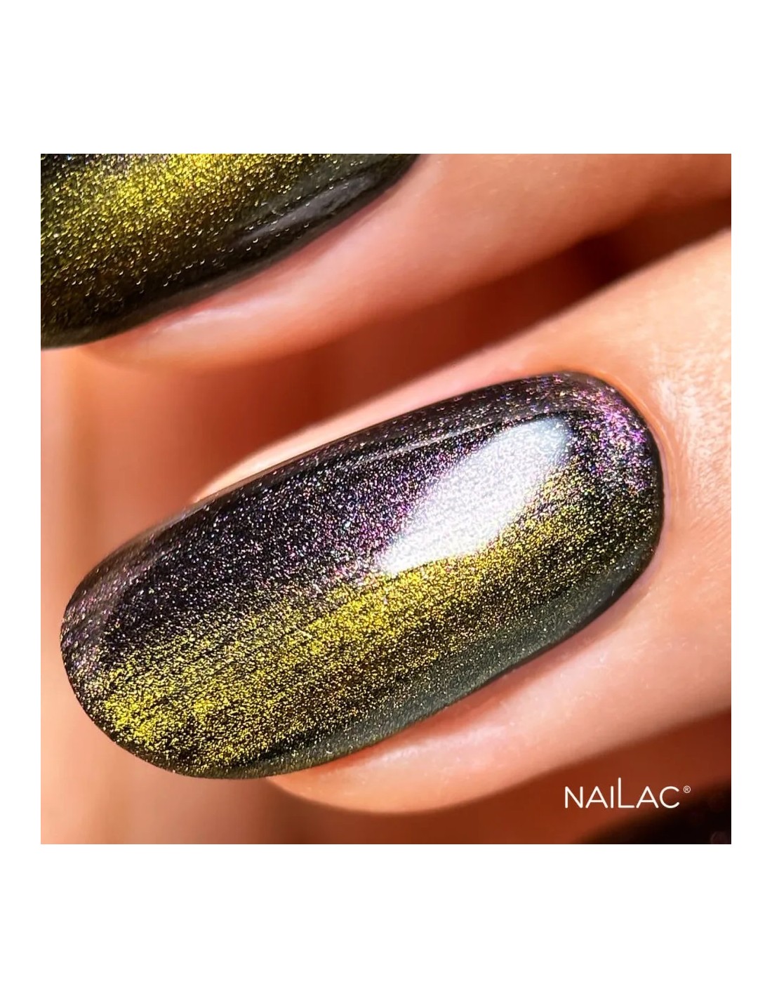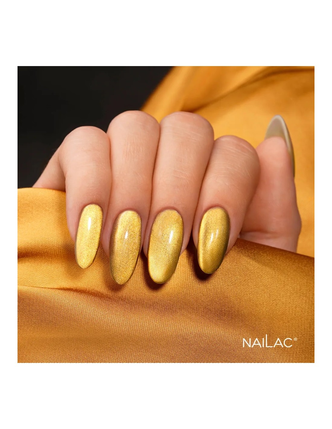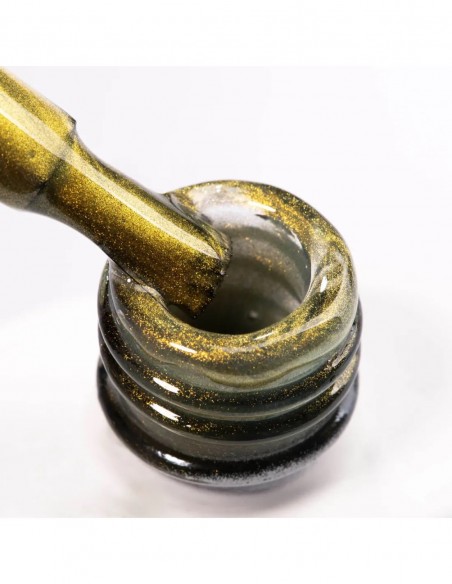 En gulloverflate med en spektakulær glans som tiltrekker seg oppmerksomhet som et smykke. Dybden i de gylne cat eye fleksjonene kombinert med blitseffekten skaper en unik og elegant karakter. Denne fargen er selve definisjonen på luksus på negler.