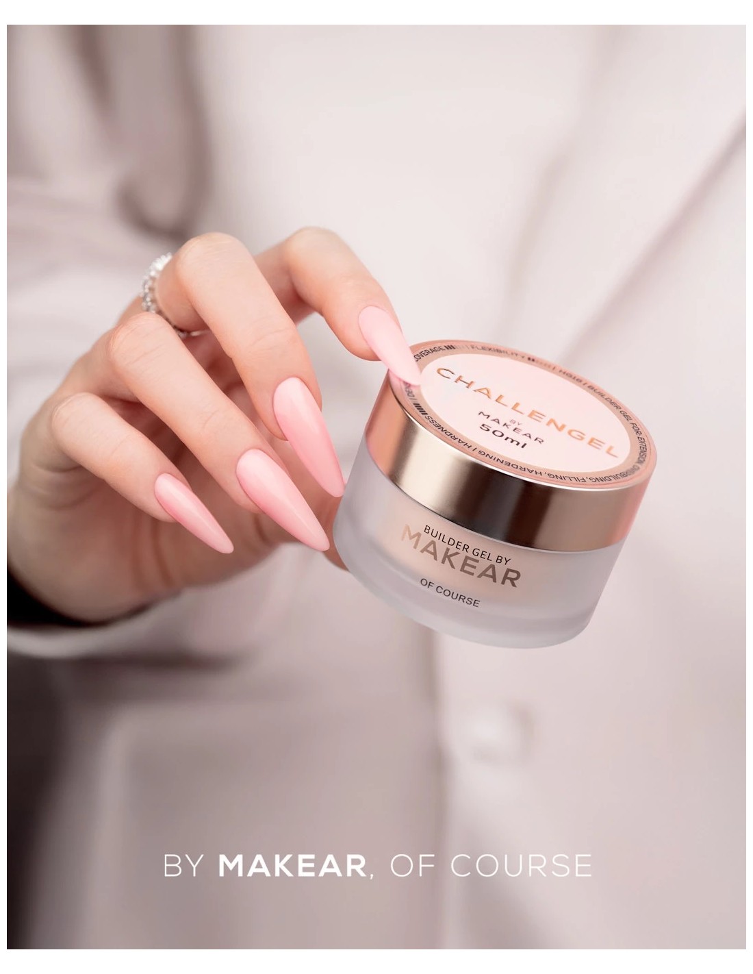 Challengel er en hard buildergel utviklet for de som ønsker å kombinere raskt arbeid med en sterk, langvarig finish. Perfekt for negleextensions på former, styrking av den naturlige negleplaten og teknikker uten filing.